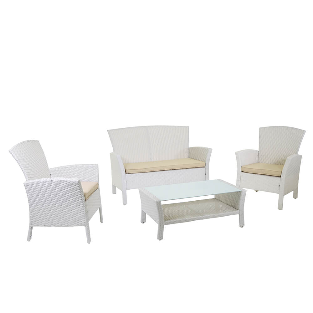 Wohnzimmer Amalia aus weißem Polyrattan mit Eisenstruktur