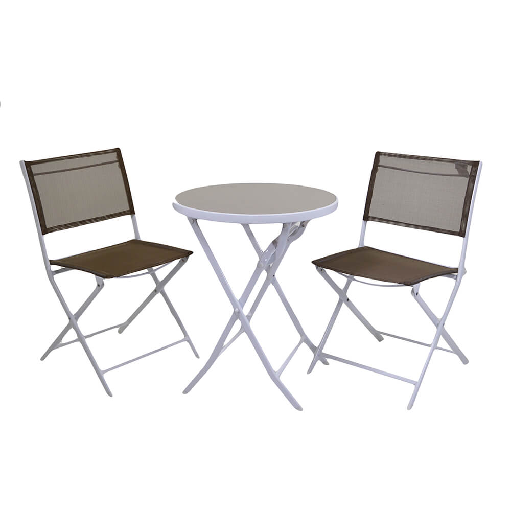 Garden Lounge Set Runder Tisch und 2 Klappstühle aus Metall und Textilene Adami Tortora