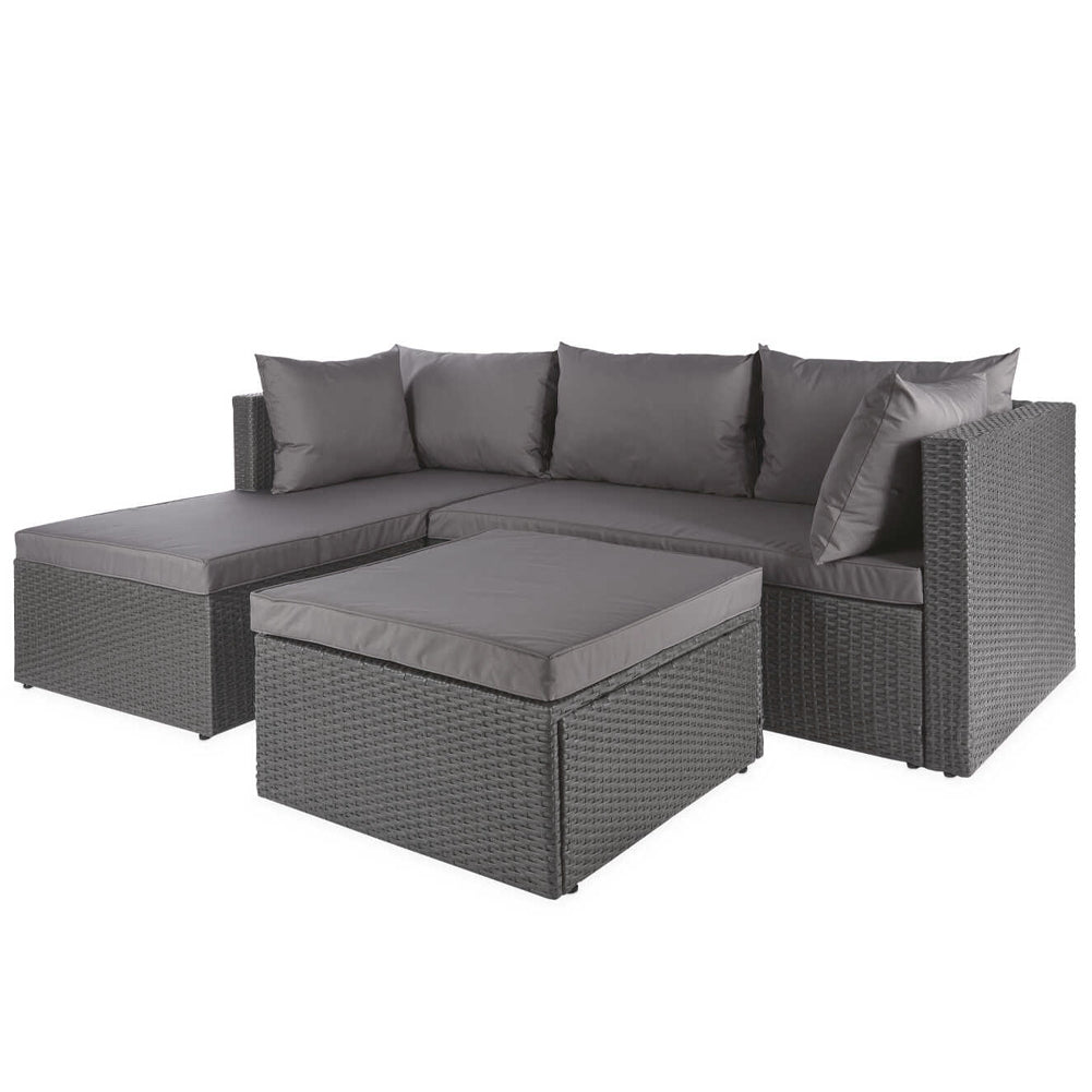 Set Salotto Divano da Giardino con Pouf Contenitore in Polyrattan Grigio Scuro