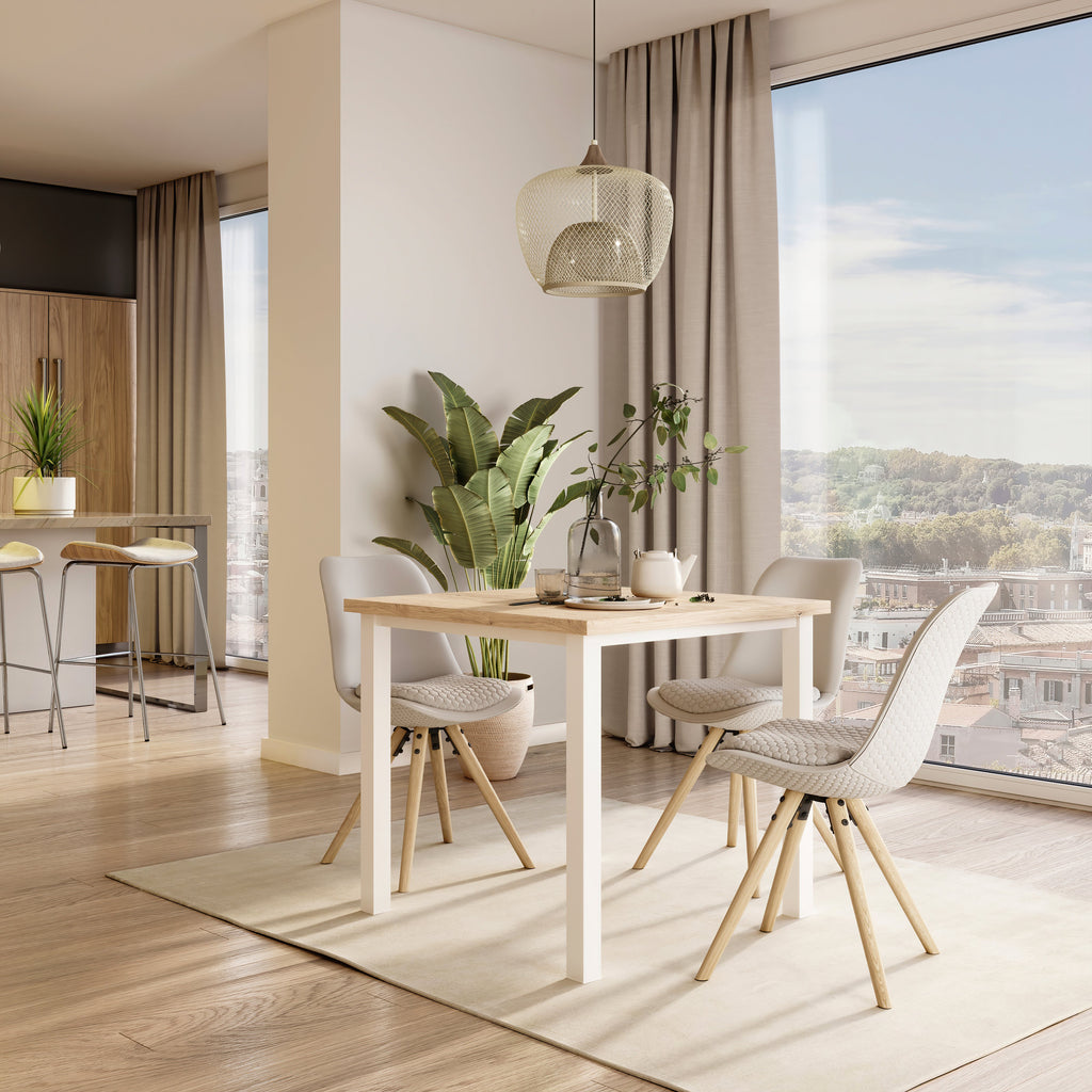 La struttura del tavolo con gambe a sezione quadrata è realizzata in acciaio e si abbina a tutti i tipi di mobili da cucina, casa e ufficio.