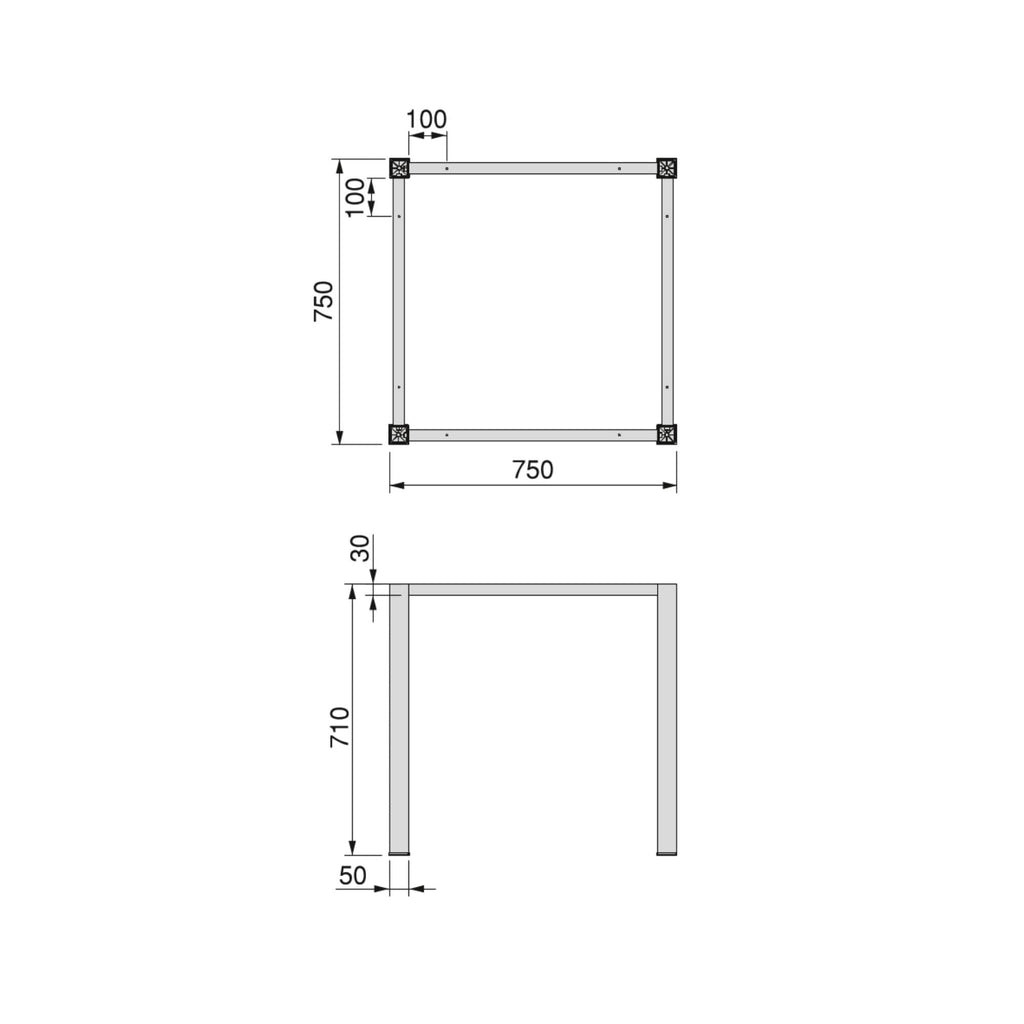 Set Struttura e Gambe Tavolo 750x750 mm in Acciaio Emuca Nero