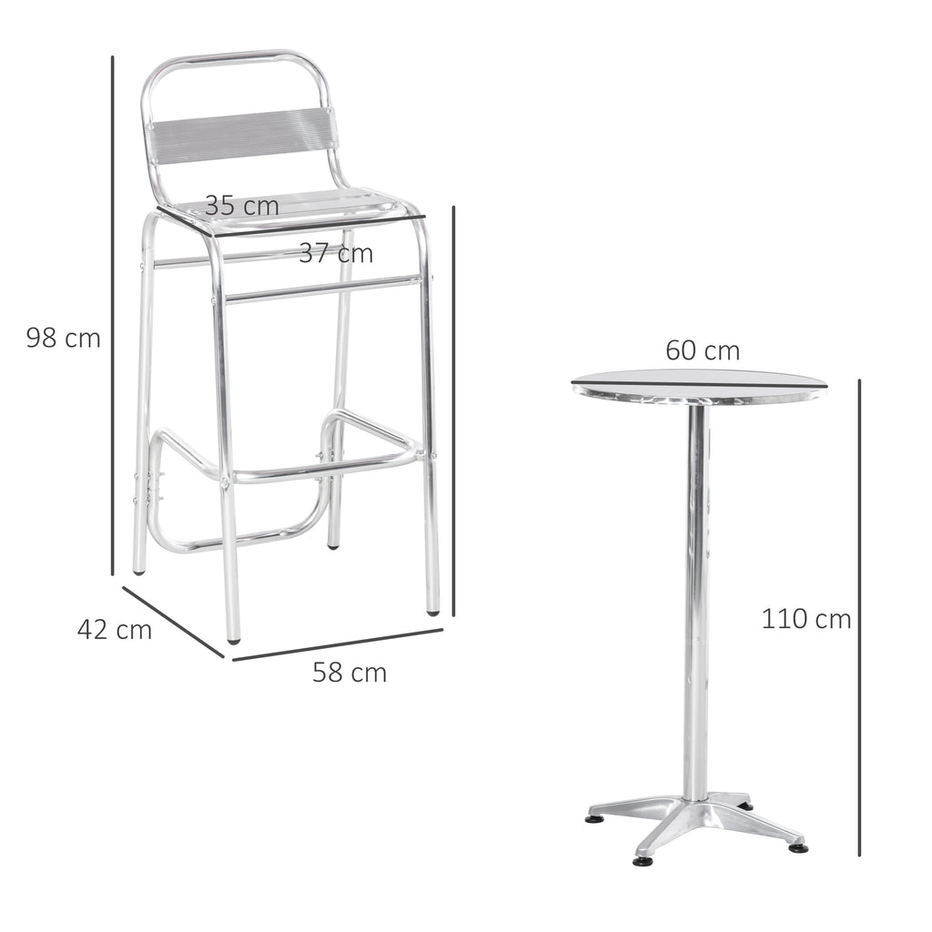 Set aus Stehtisch und 2 Gartenhockern aus Aluminium und Stahl