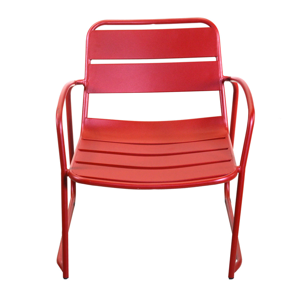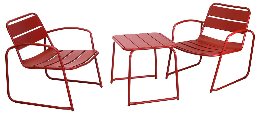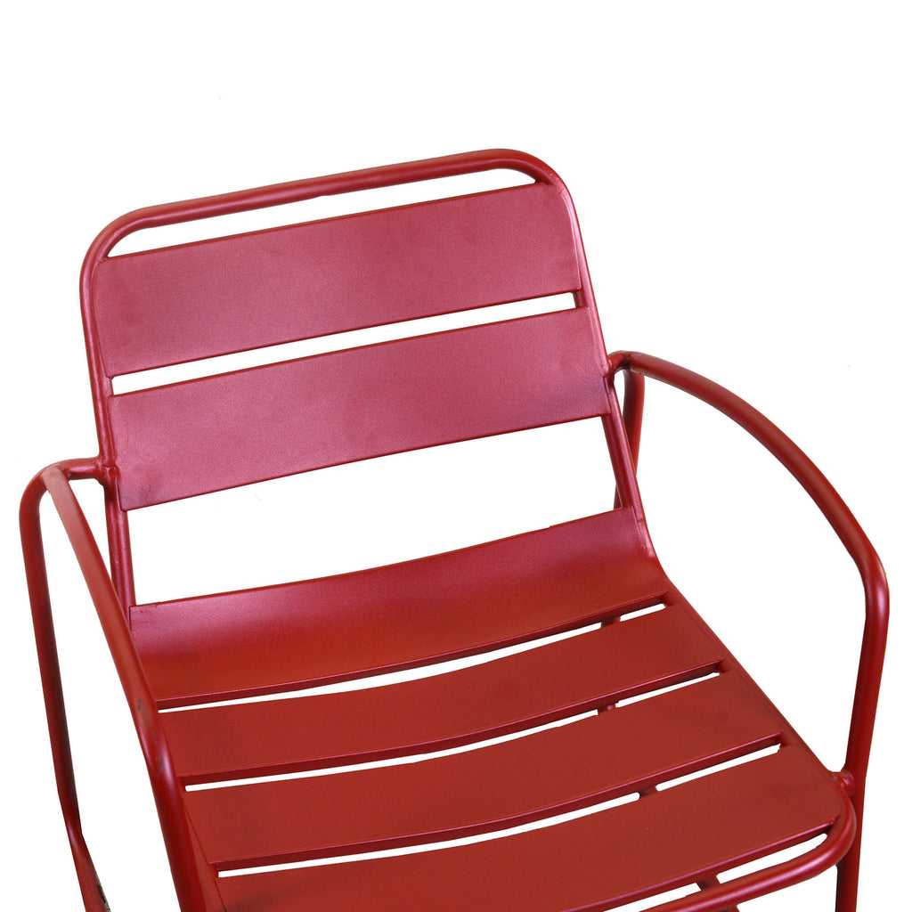 Set aus Couchtisch und 2 Gartensesseln aus rotem Bistro-Metall