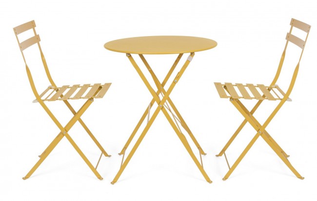 Set Tavolino e 2 Sedie da Giardino Bistrot Wissant Ocra