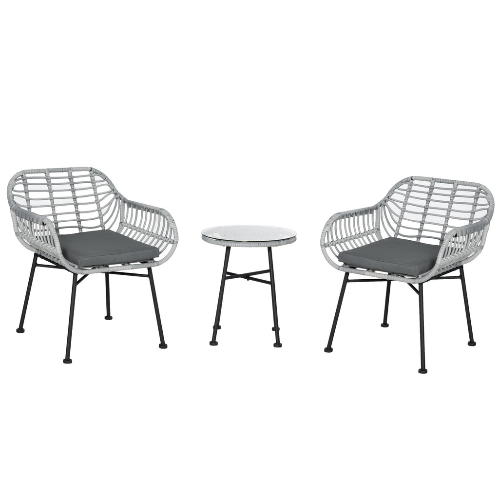 Set aus Couchtisch und 2 Gartenstühlen aus grauem Polyethylen-Rattan