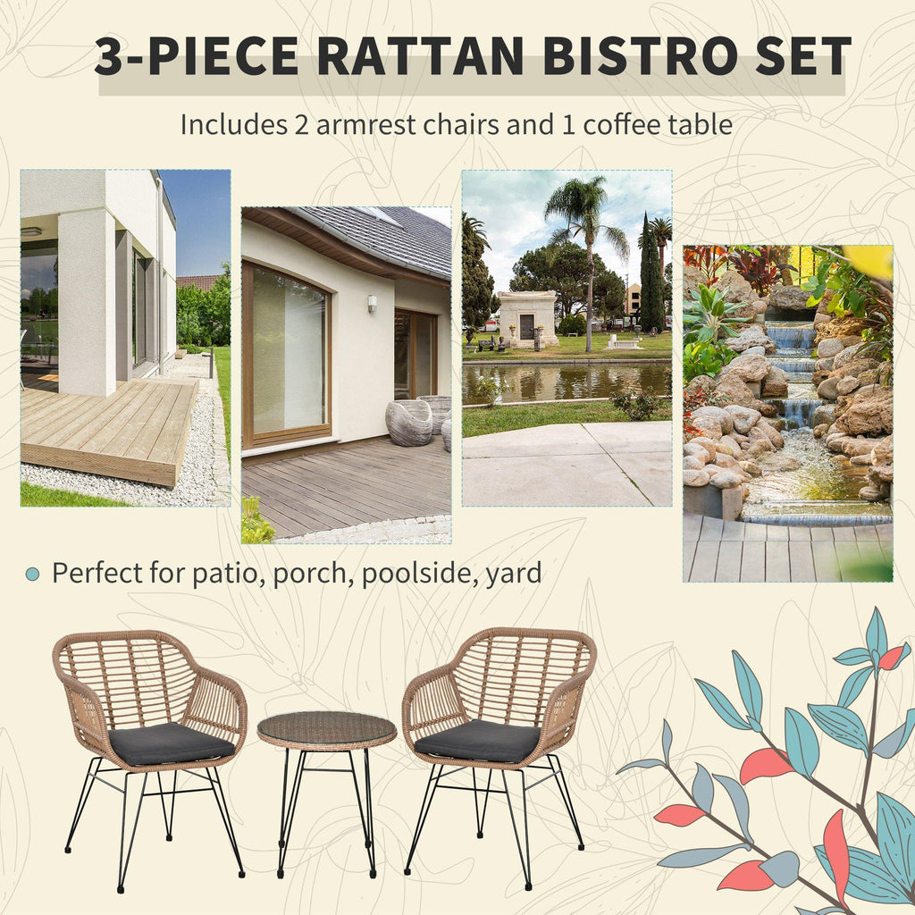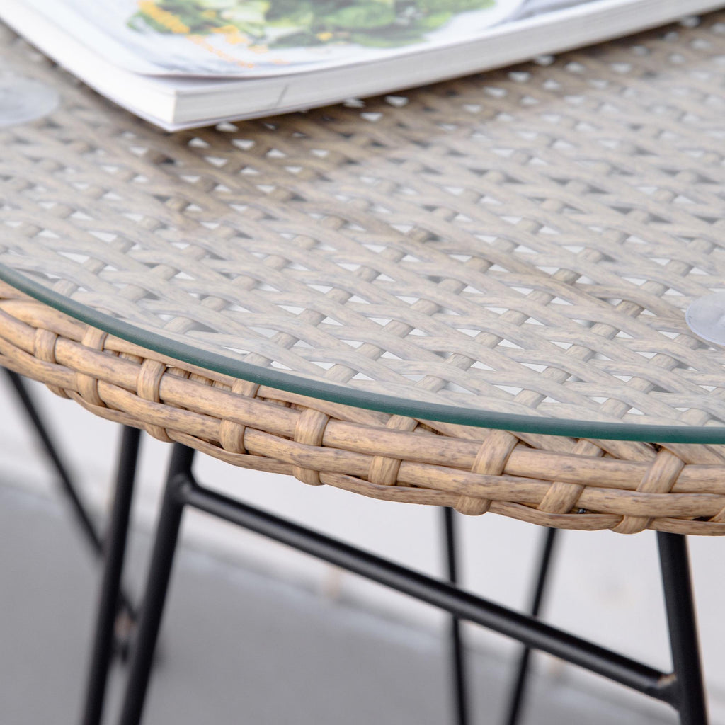 - 3-TEILIGES GARTENSET: Das PE-Rattan-Gartenset besteht aus zwei Stühlen mit Armlehnen und einem Couchtisch mit gehärteter Glasplatte, ideal für eine Pause alleine oder um sich mit Freunden in der Sonne zu treffen.