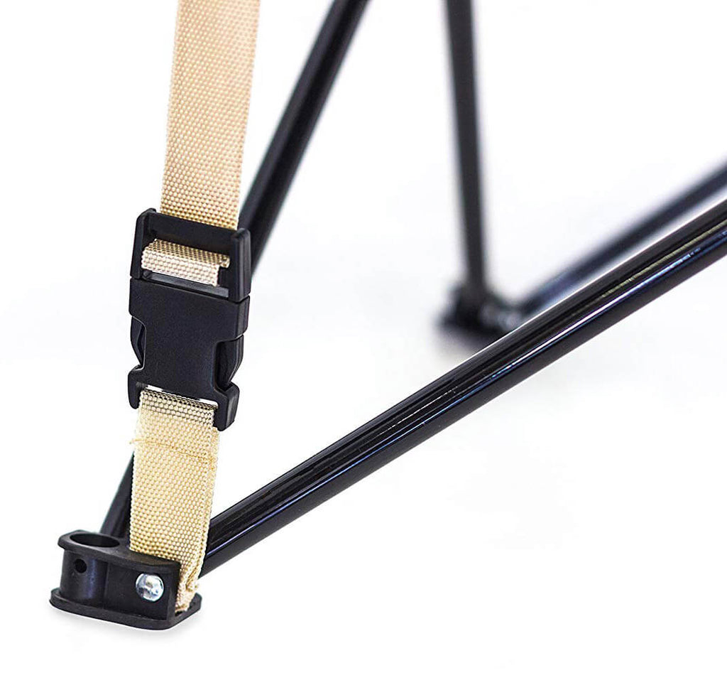 Elastische Bänder, die an abwechselnden Tischfüßen befestigt sind, erhöhen die Spannung auf der Tischplatte.
