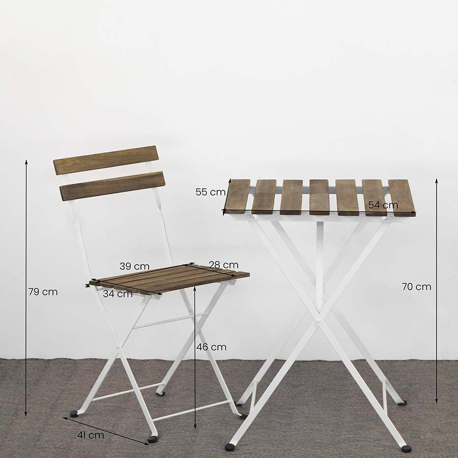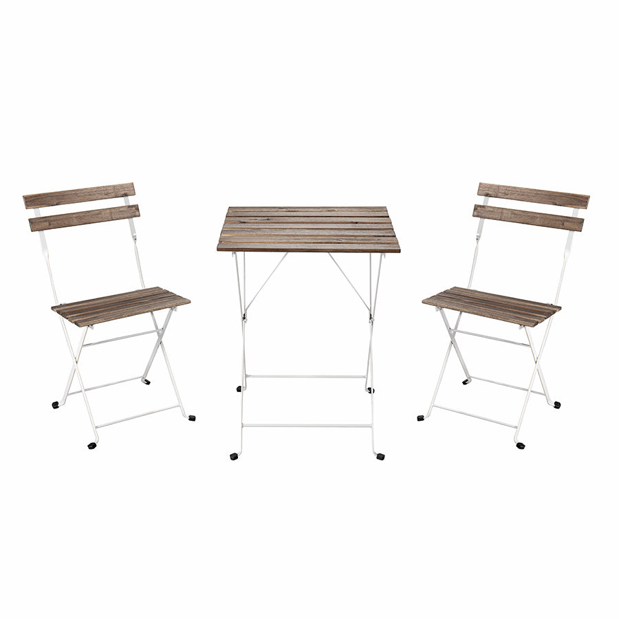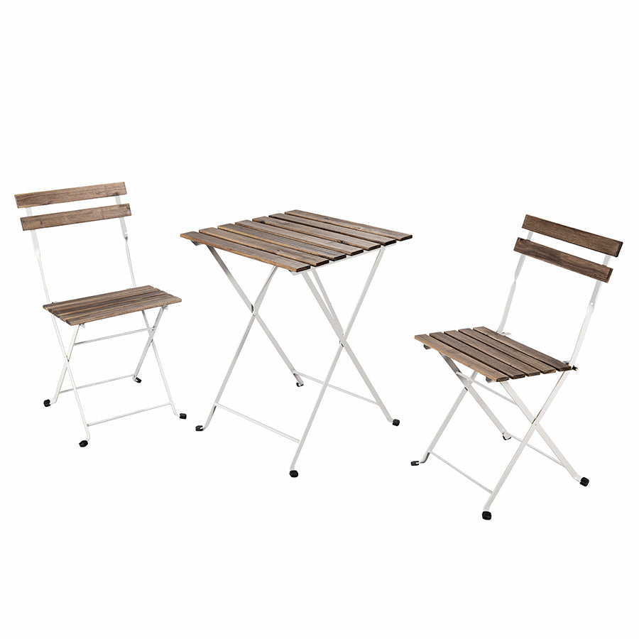 Set Tavolino e 2 Sedie Pieghevoli da Giardino Bistrot Bianco