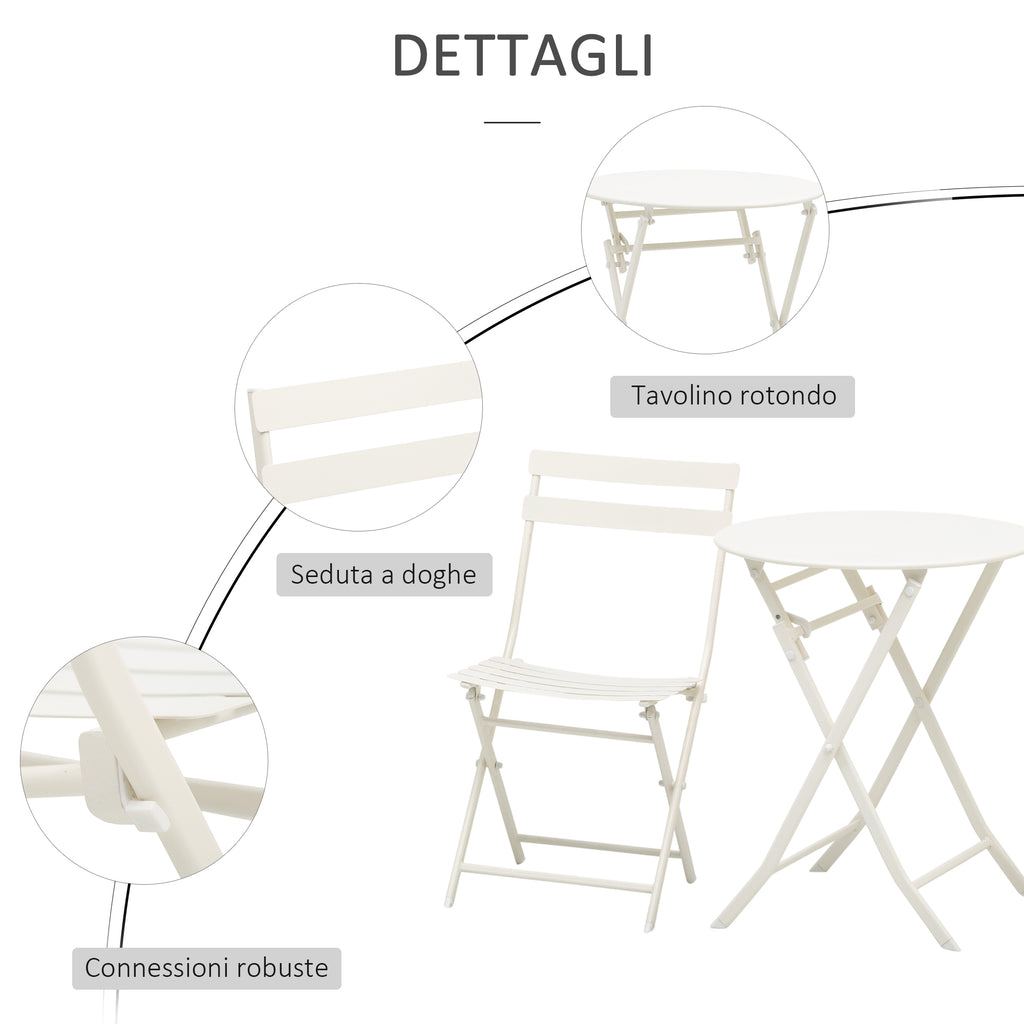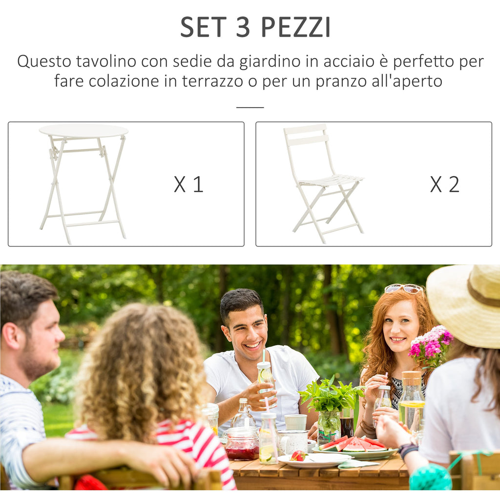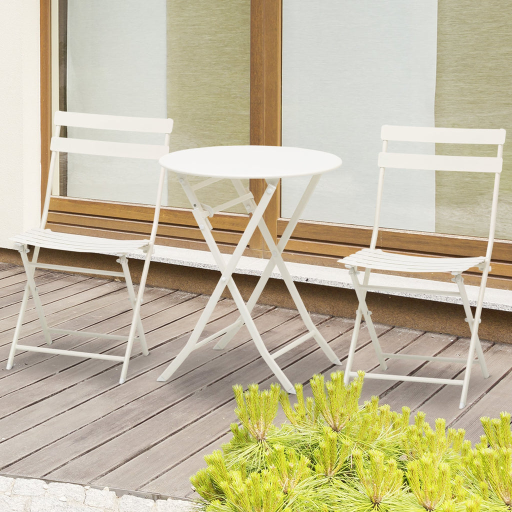 Set aus Couchtisch und 2 klappbaren Gartenstühlen aus weißem Stahl