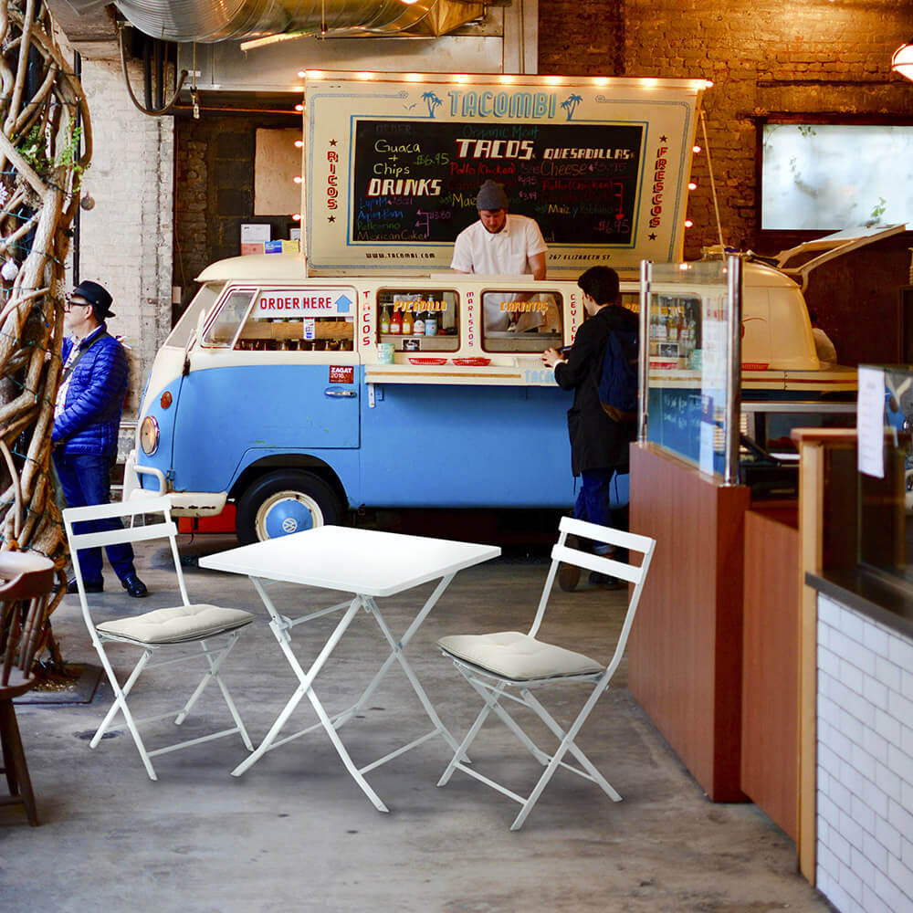 Tiziano ist das ideale Set für diejenigen, die ihre Außenbereiche mit einem praktischen, einfachen Artikel in zeitlosem Stil einrichten möchten. Unser Produkt wird mit einem für diese Art von Artikeln ungewöhnlichen Augenmerk auf Qualität hergestellt, sowohl für die Dicke des Stahls als auch für die Lackierung vor der Pulverbeschichtung, tatsächlich wird es mit einem EDV-Verfahren behandelt, das aus dem Eintauchen in eine spezielle flüssige Farbe besteht Schutz, der durch das Elektrophoreseverfahren alle Zwischenräume abdeckt, beispielsweise auch jene zwischen den Schweißnähten, die im Allgemeinen eher Rost ausgesetzt sind. Sowohl der Tisch als auch die Stühle sind klappbar, um auf kleinstem Raum verstaut zu werden. Ein weiteres Element, das unseren Artikel auszeichnet, sind die maßgefertigten Kissen für eine Produktart, die im Allgemeinen keine hat, und die praktische Anwendbarkeit mit angenehmem Komfort verbinden.