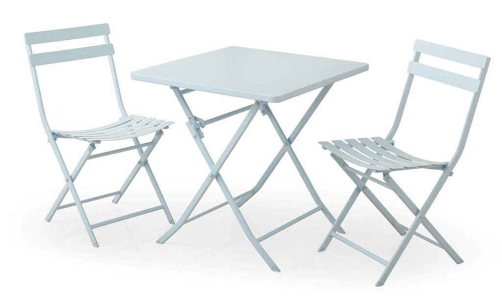 Set aus Couchtisch und 2 klappbaren Gartenstühlen aus hellblauem Kraus Tiziano Stahl