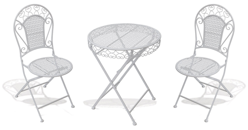Set aus Couchtisch und 2 klappbaren Gartenstühlen aus Schmiedeeisen Soriani New Loire Breafast White