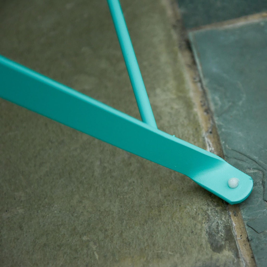 Set aus Couchtisch und 2 klappbaren Gartenstühlen aus grünem Metall