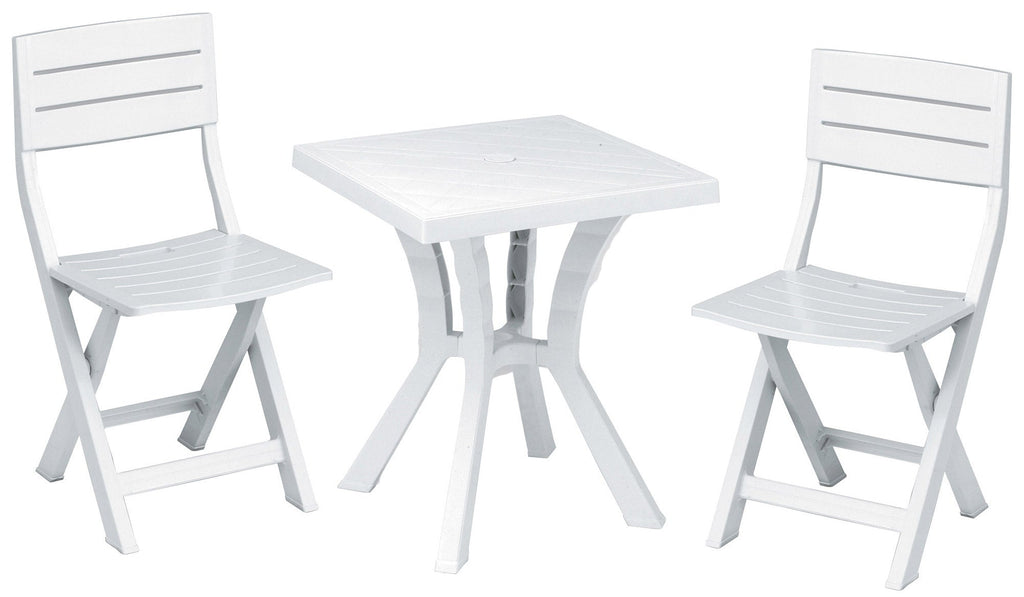Set aus Couchtisch und 2 klappbaren Gartenstühlen aus Bauer Duetto White Resin