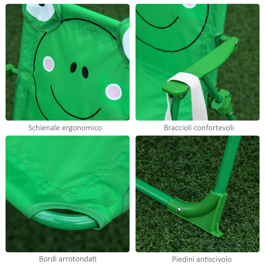 Gartentisch und 2 Klappstühle für Kinder mit grünem Froschschirm