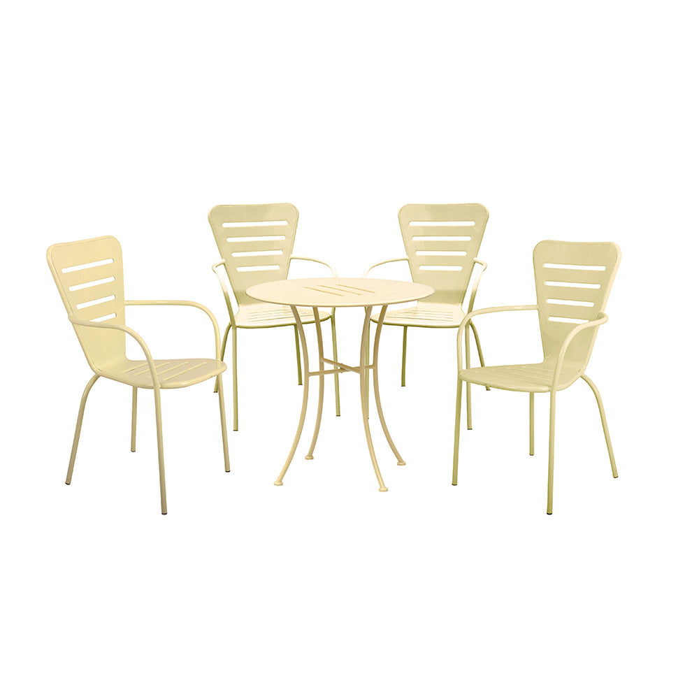 Gedeckter Tisch + 4 Stühle aus cremefarben lackiertem Stahl Geneva Lounge