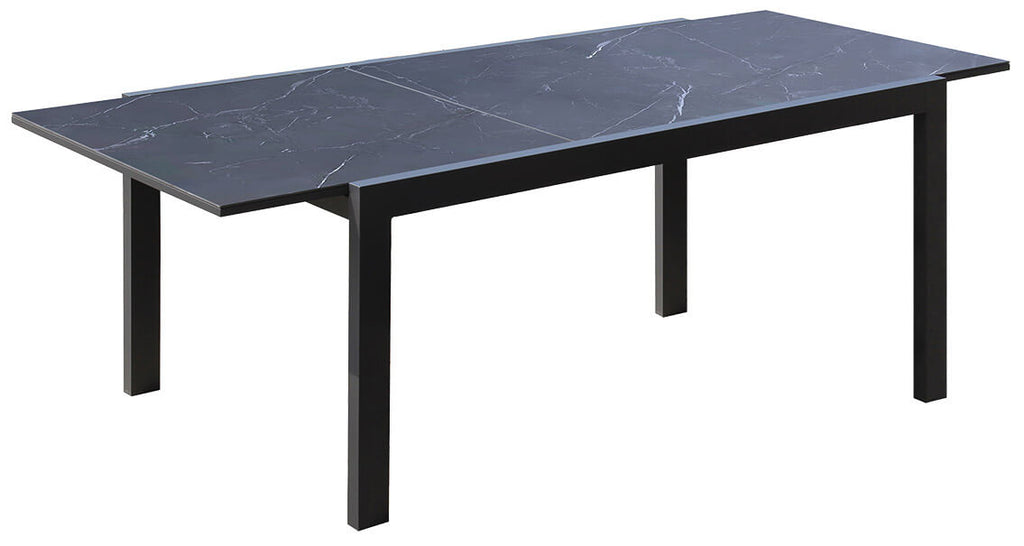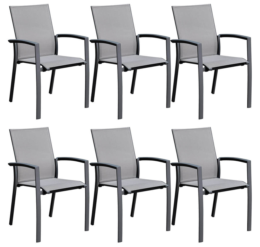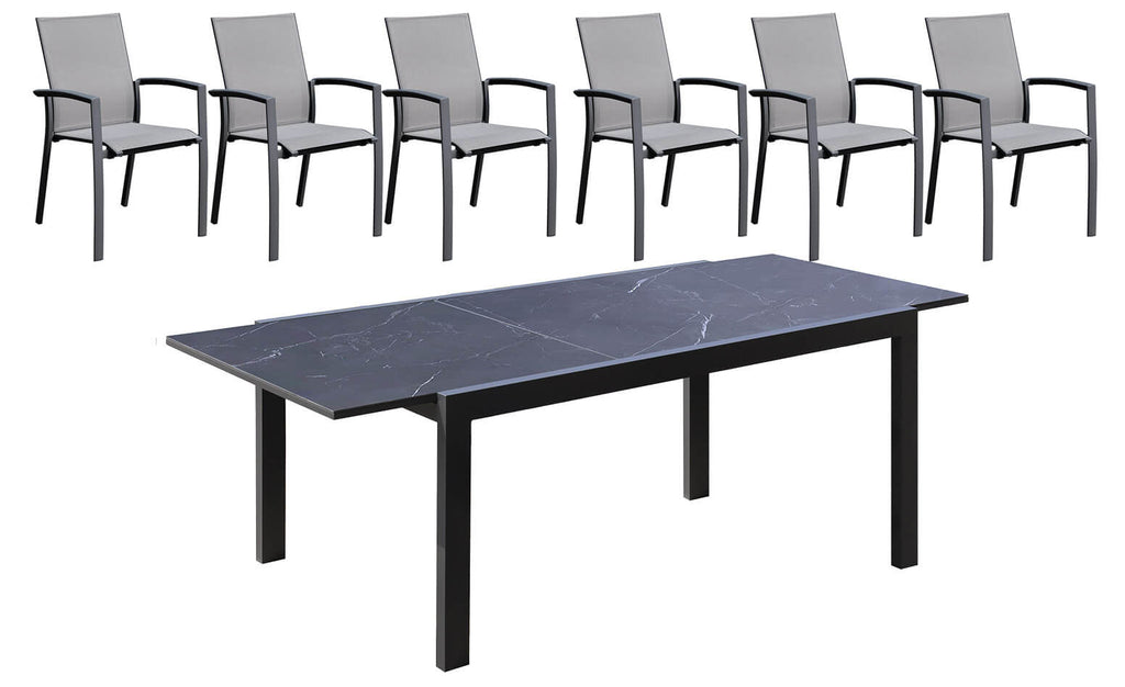 Set aus ausziehbarem Tisch und 6 Gartenstühlen aus Aluminium und anthrazitfarbenem Textilene