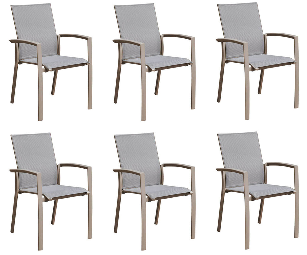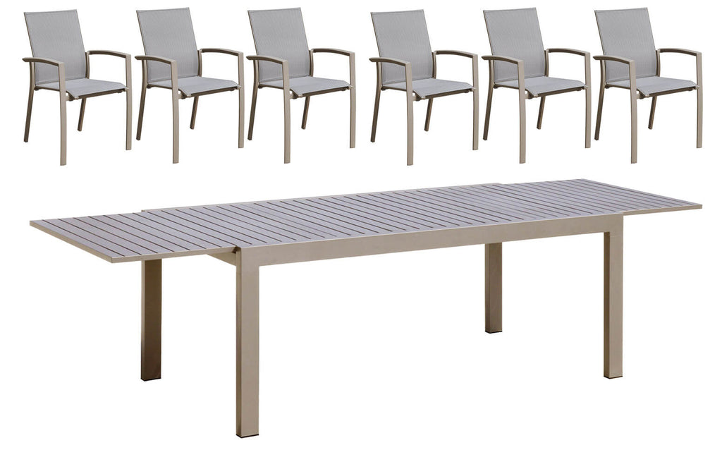 Set aus ausziehbarem Tisch und 6 Gartenstühlen aus Aluminium und Tortora Textilene