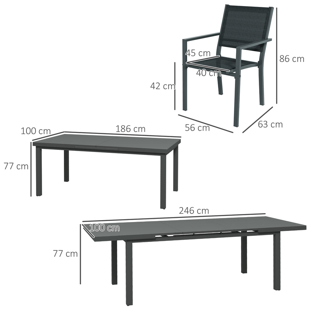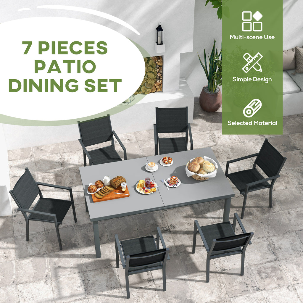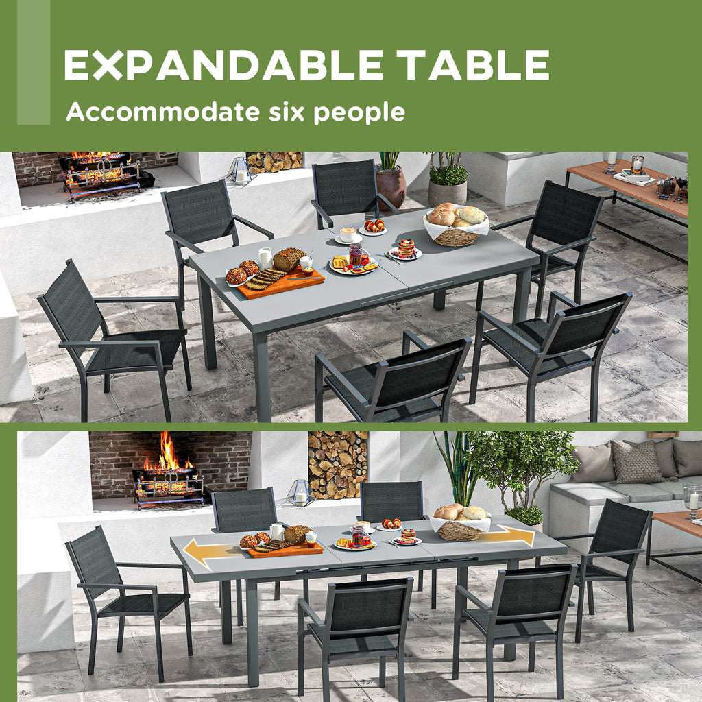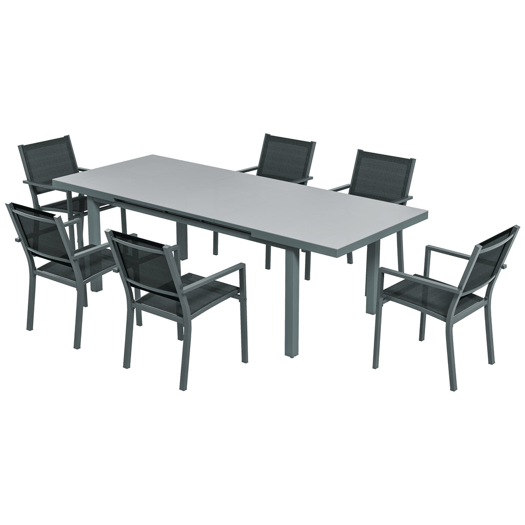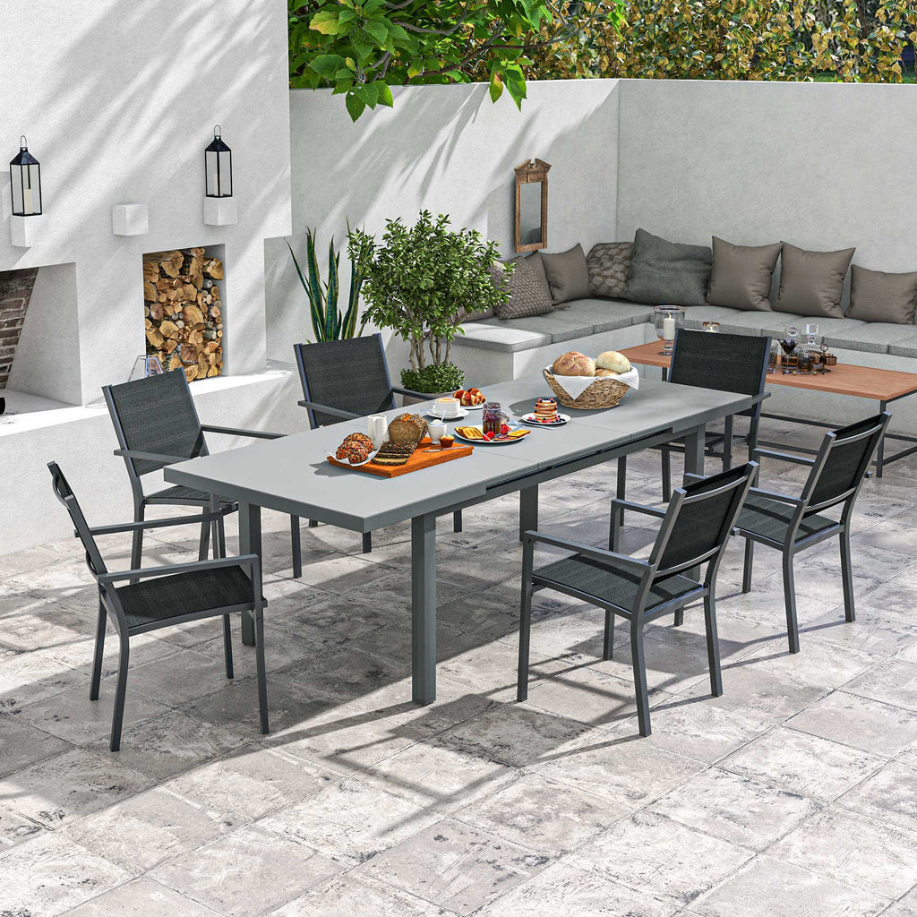 Set Tavolo Allungabile e 6 Sedie Pieghevoli da Giardino in Alluminio Grigio e Nero
