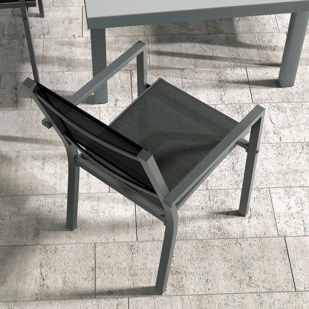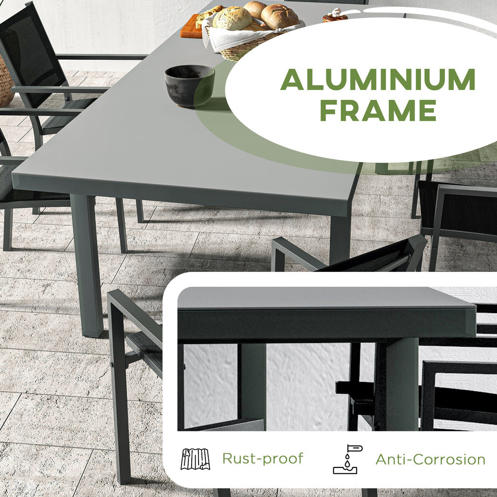 Che si tratti di un brunch nel fine settimana, di una cena o di un incontro serale in compagnia, lascia che questo set da giardino per 6 persone sia la soluzione alle tue esigenze. Grazie all'utilizzo dell'alluminio per la struttura delle sedie da pranzo e del tavolo rettangolare, ogni pezzo del set da esterno si rivela robusto e resistente, grazie anche a un tessuto a rete traspirante su tutte le sedie per sedersi comodamente.