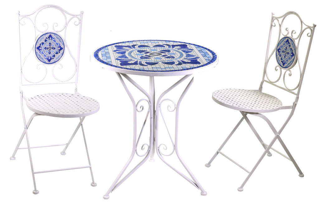 Gartentisch-Set mit Mosaik + 2 Adami-Stühlen aus Metall