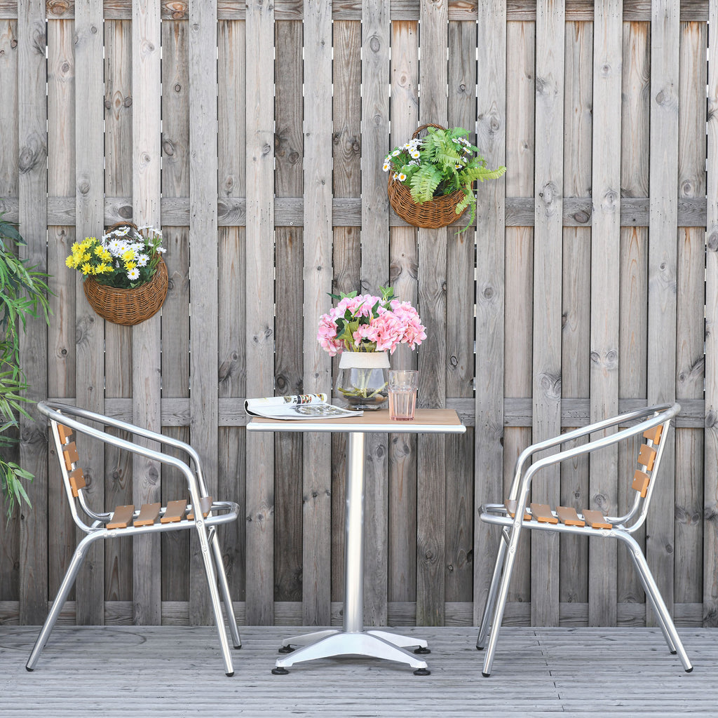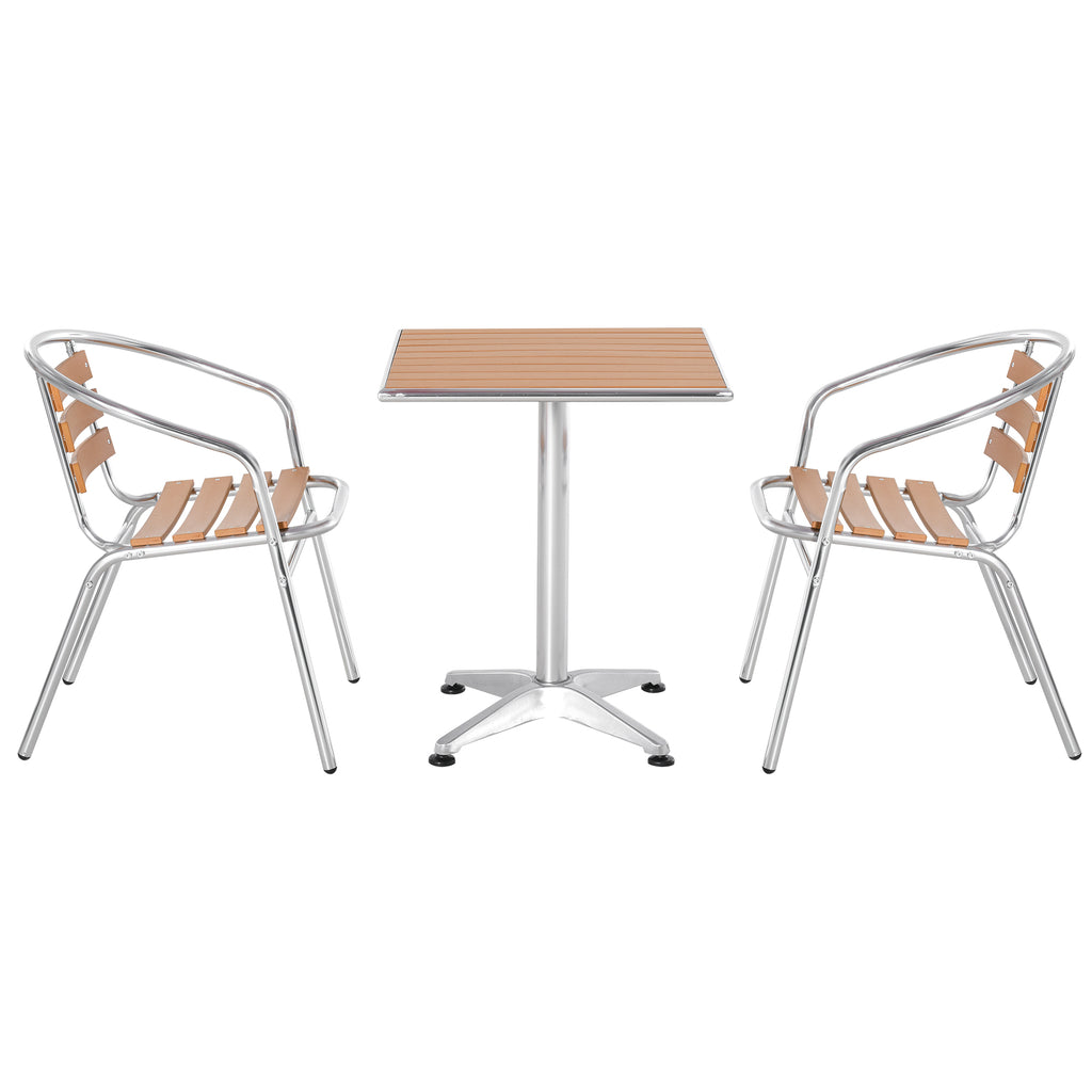 Set aus Tisch und 2 Gartenstühlen aus Aluminium in Holzoptik