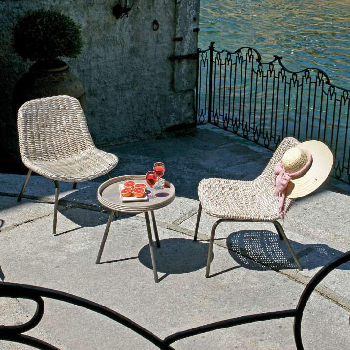 Gartentisch und 2 Stühle aus grauem Kubu Vorghini Kalkutta