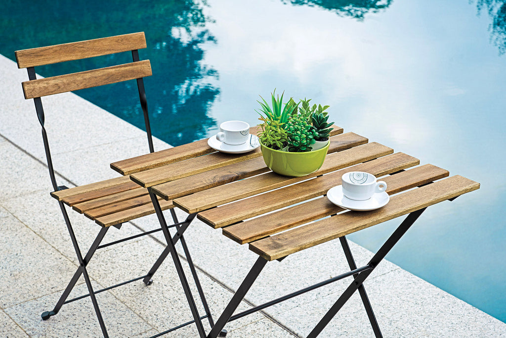 Il set Bistro Due Posti è composto da due sedie pieghevoli dalle dimensioni di 39x80x44 cm e da un tavolo di 55x55x71 cm. Realizzato in ferro nero e acacia invecchiata, questo set aggiungerà un tocco rustico e chic al tuo spazio esterno. Ideale per godersi un momento di relax o un pasto all'aperto in compagnia di un amico o di un familiare.