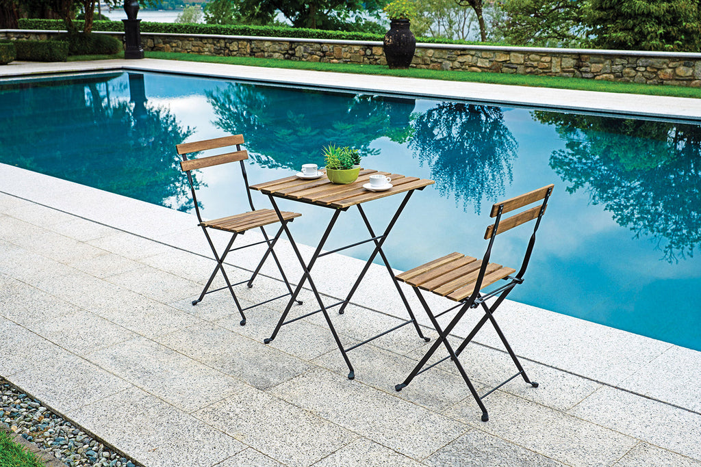 Set Tavolo e 2 Sedie da Giardino Pieghevoli Bistrò in Ferro e Legno di Acacia