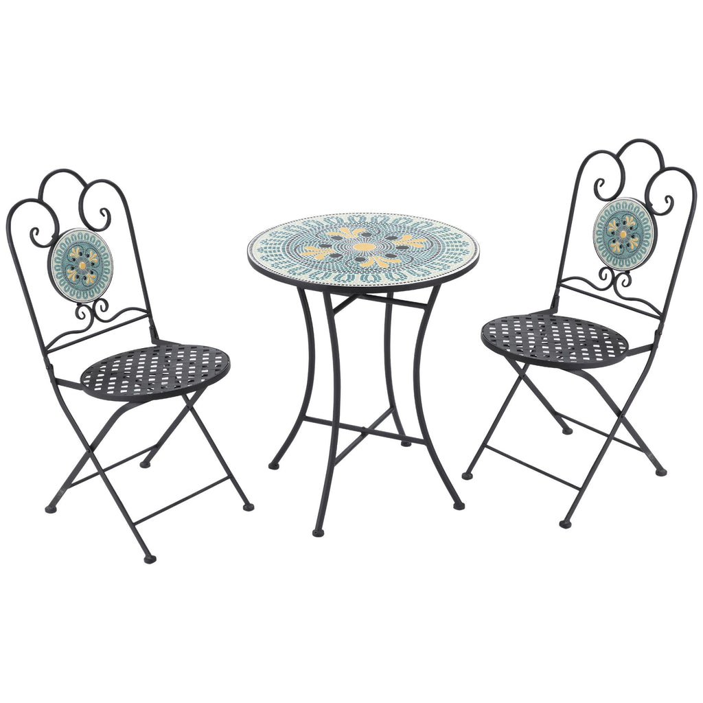 Set aus Gartentisch und 2 Klappstühlen mit Metallmosaik