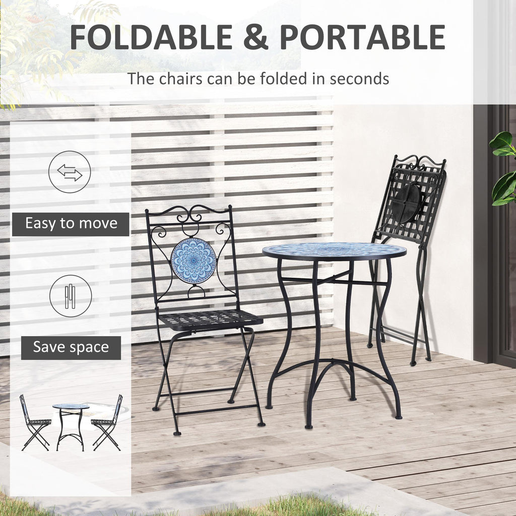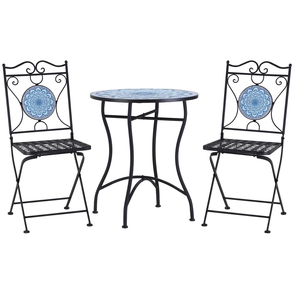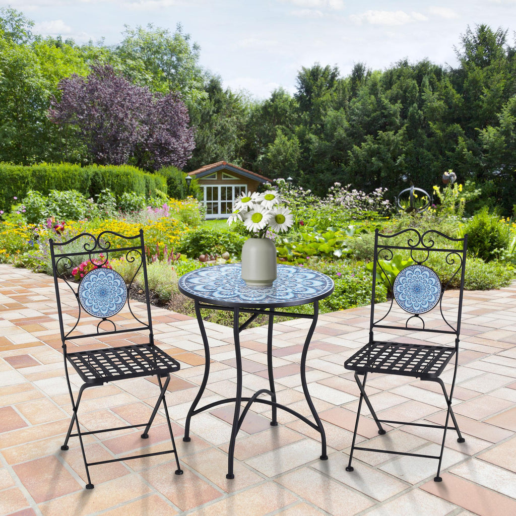Set aus Gartentisch und 2 Klappstühlen mit Metallmosaik