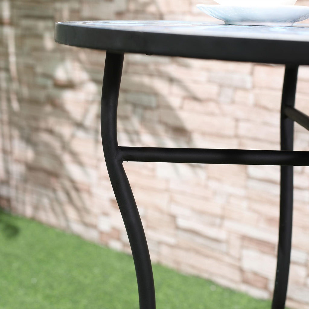 Das 3-teilige Gartenset von eignet sich perfekt, um Außenbereichen eine schicke Note zu verleihen. Es hat eine elegante Mosaikdekoration auf der Rückseite der Stühle und auf der Tischplatte im Freien, die das Set originell und dekorativ macht. Perfekt, um sich zu zweit hinzusetzen, um sich zu unterhalten und einen Drink zu schlürfen, das Set ist ideal für den Garten, Balkon, die Terrasse und viele andere Räume. Verpassen Sie es nicht in Ihrem Zuhause!