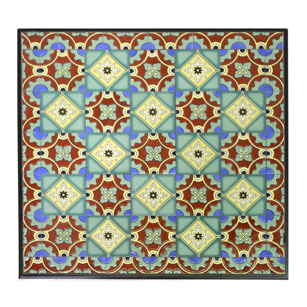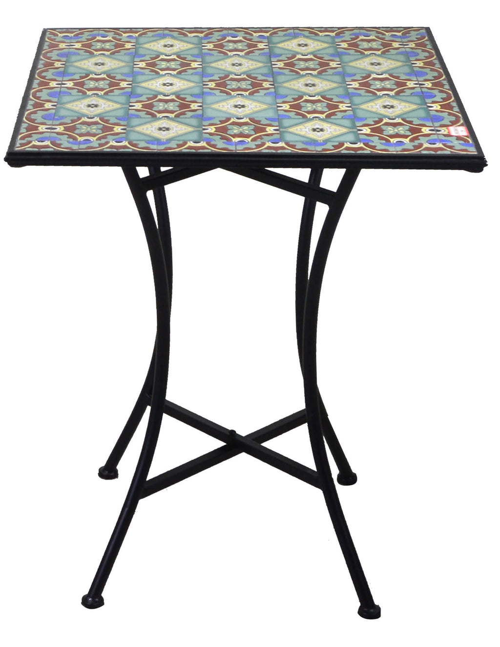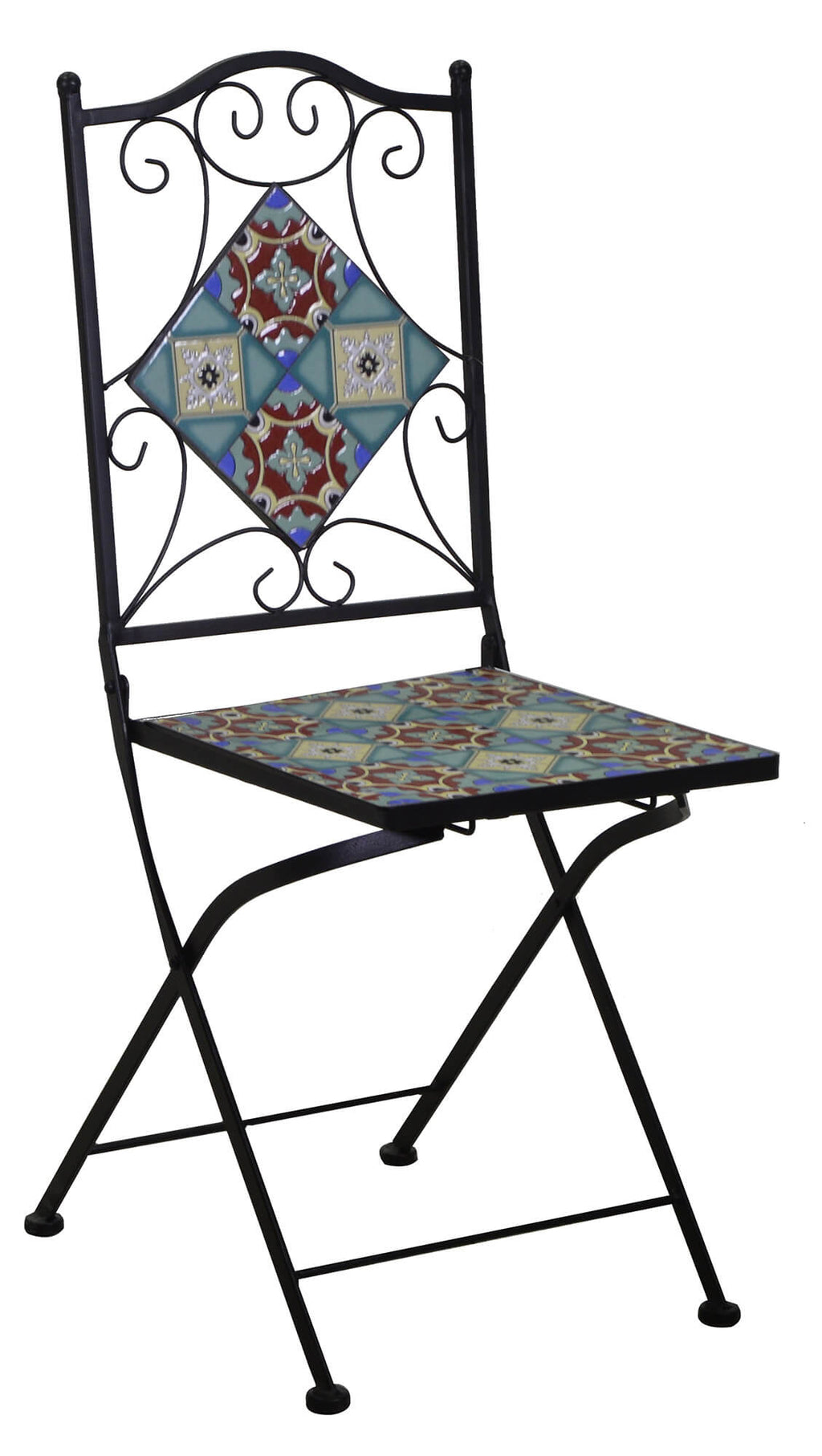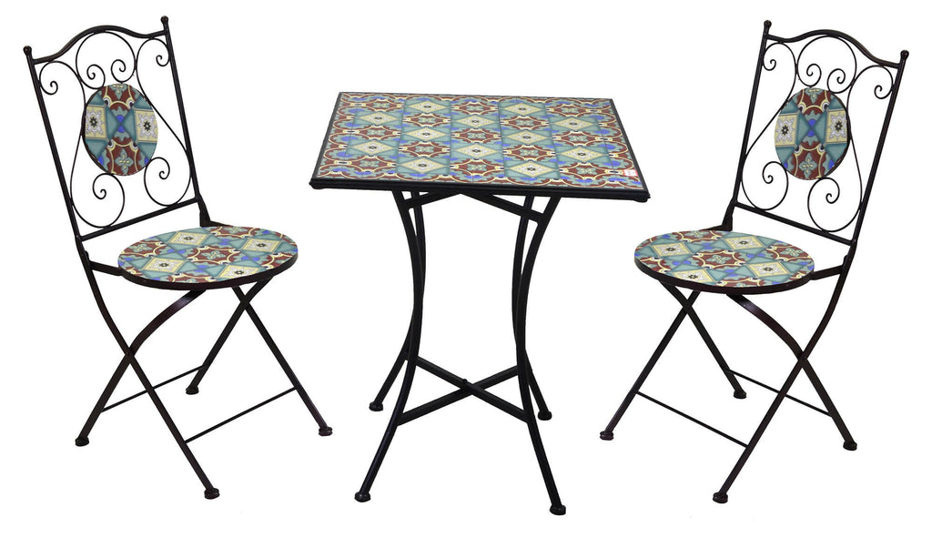 Gedeckter Tisch und 2 klappbare Gartenstühle mit Messina-Metallmosaik
