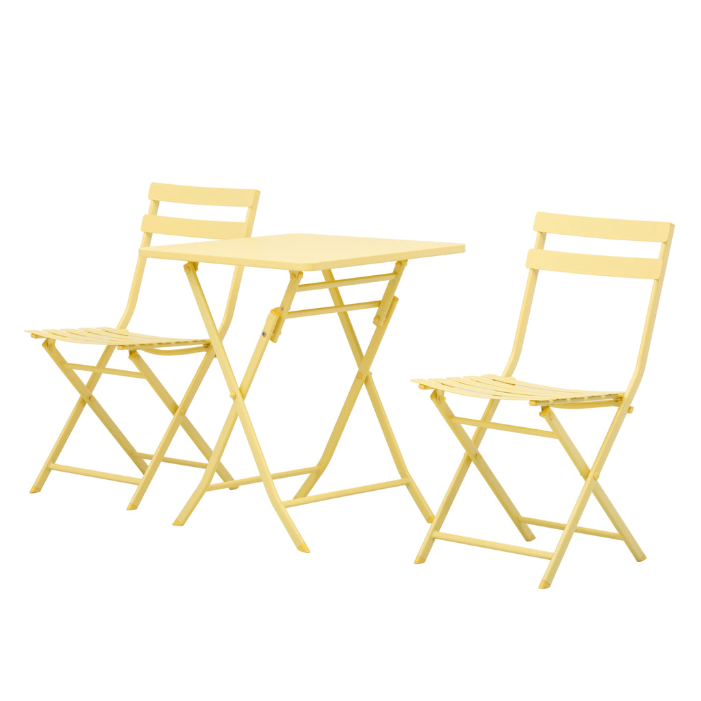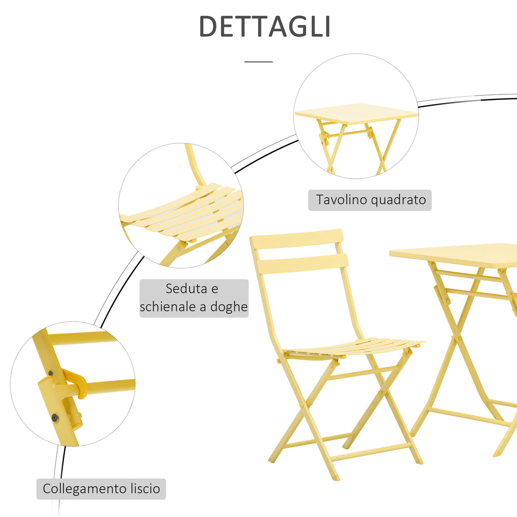 - 3-TEILIGES SET: Dieses Set enthält 2 Stühle und einen Tisch aus Metall mit gelber Oberfläche. Perfekt für ein Mittagessen auf der Terrasse oder einen Aperitif im Freien mit Ihrem Schatz.