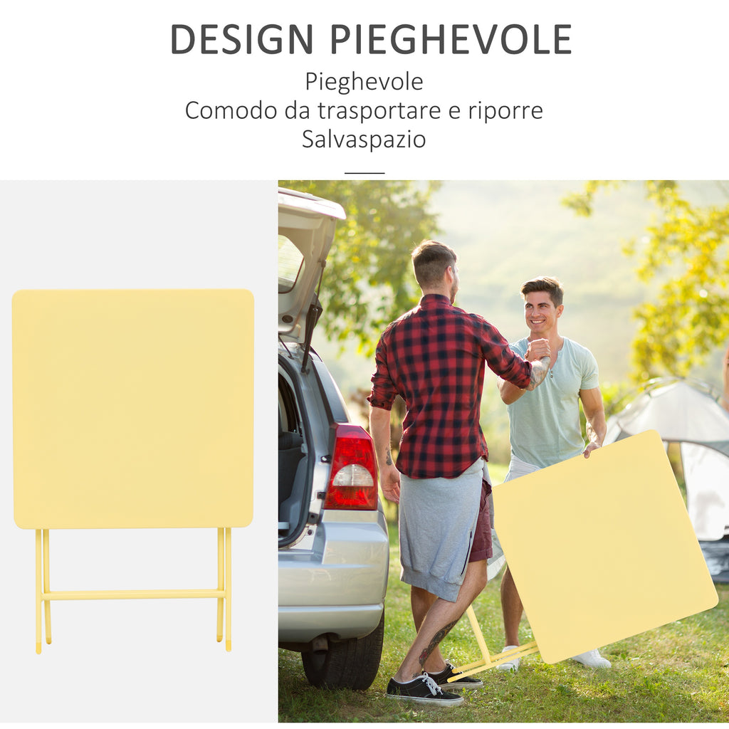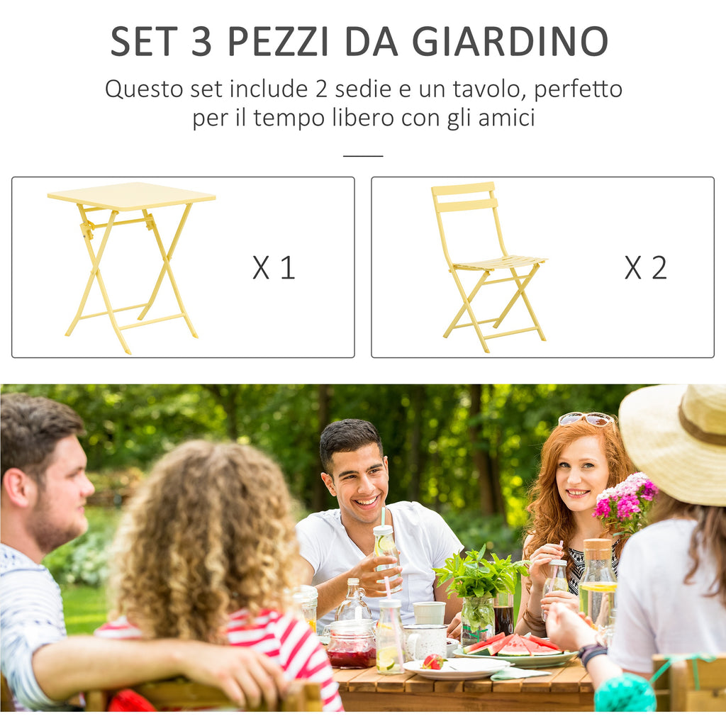 Set aus Tisch und 2 klappbaren Gartenstühlen aus gelbem Metall
