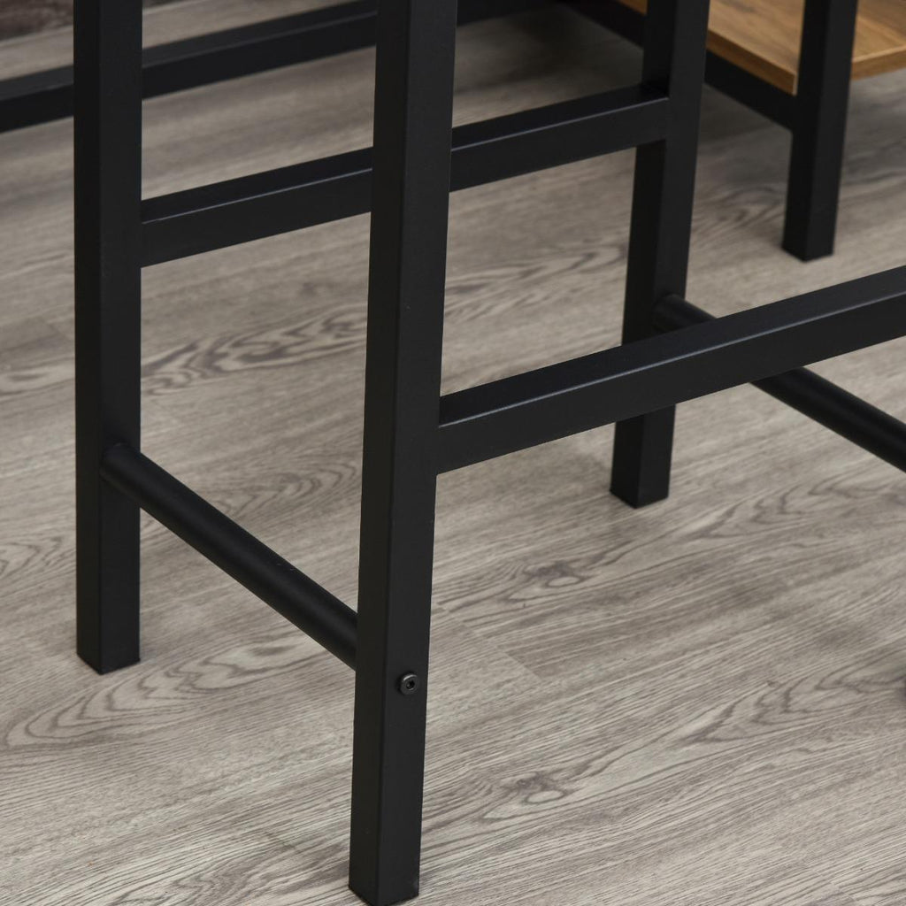 Dieses Set aus Tisch und Hocker ist sehr elegant und vintage. Tischplatte aus dunkelbrauner Holzmaserung, Metallrahmen mit schwarzem Finish, ist eine gute Innendekoration. Es hat eine große Arbeitsplatte, 2-stufige Wein- und Getränkehalter und ein unteres Regal, das genügend Stauraum bietet. Es ist die beste Wahl für Küche, Bar, Wohnzimmer und Esszimmer.