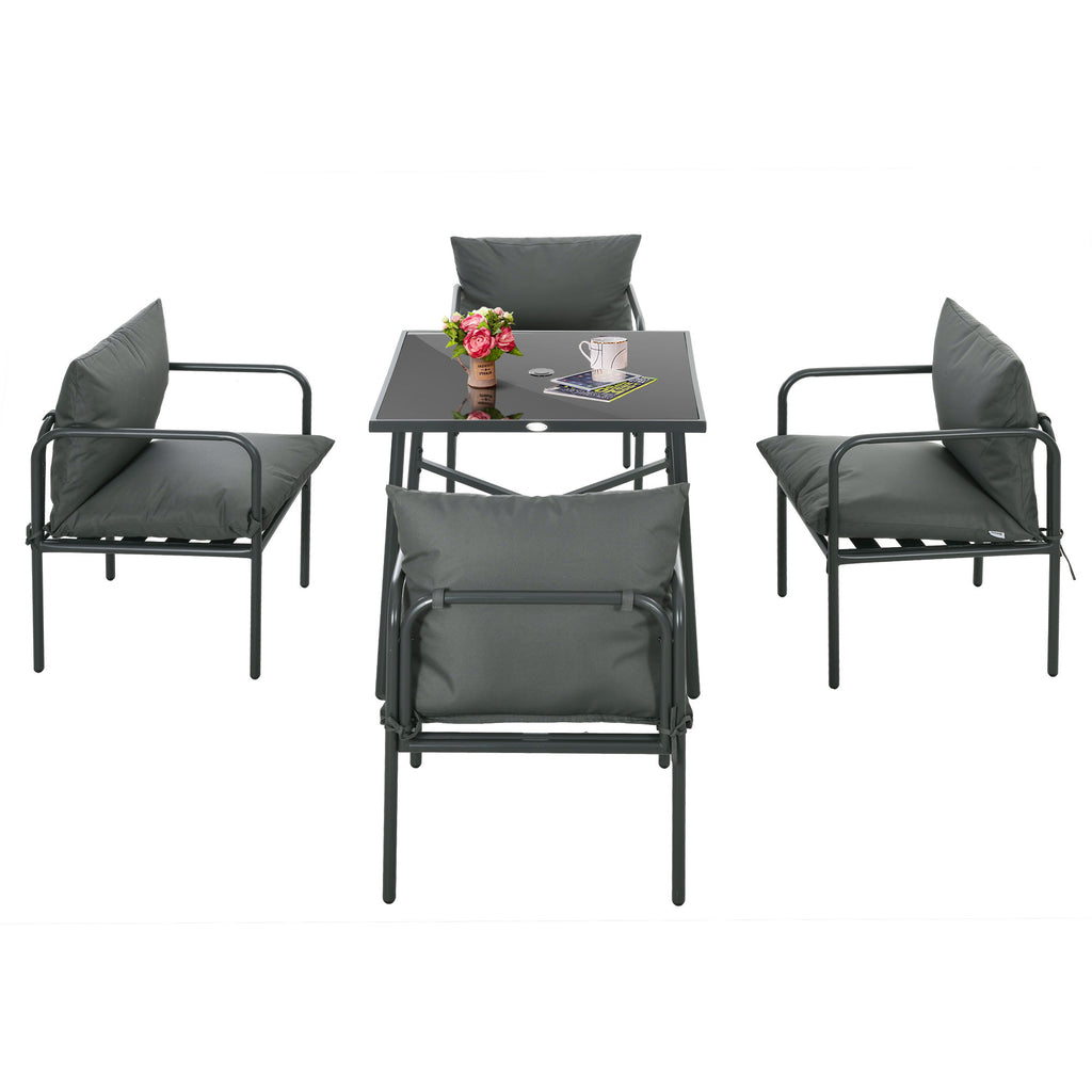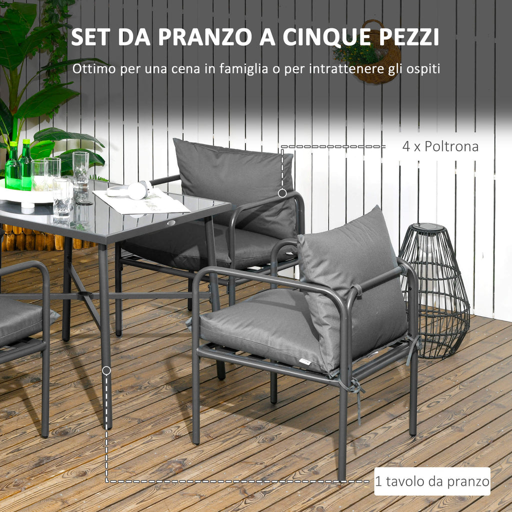 Set Tavolo e 4 Sedie da Giardino in Acciaio con Cuscini Grigio