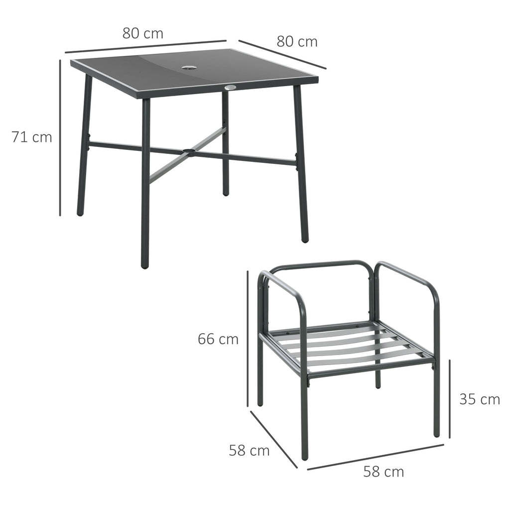- Robusta struttura in acciaio con piano del tavolo da giardino in vetro temperato