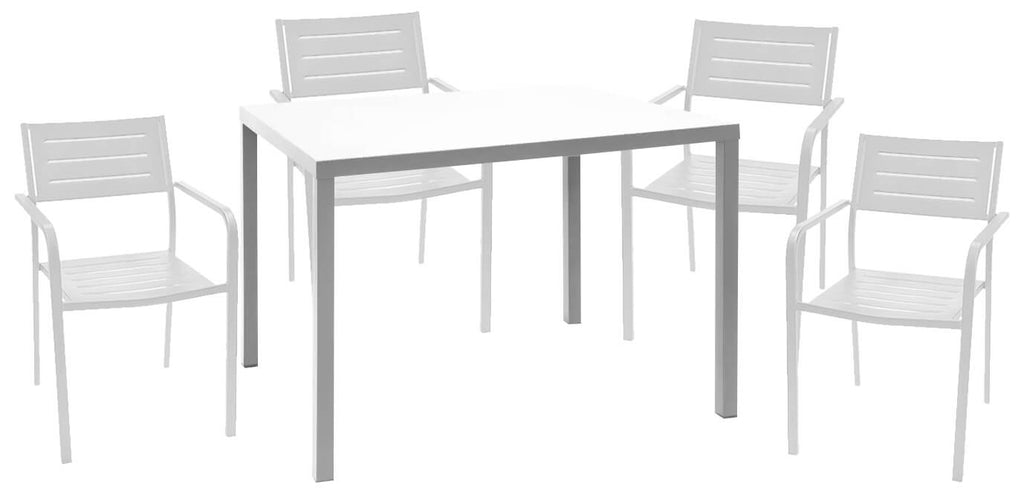 Set aus Tisch und 4 Gartenstühlen aus RD Italia Dorio White Steel