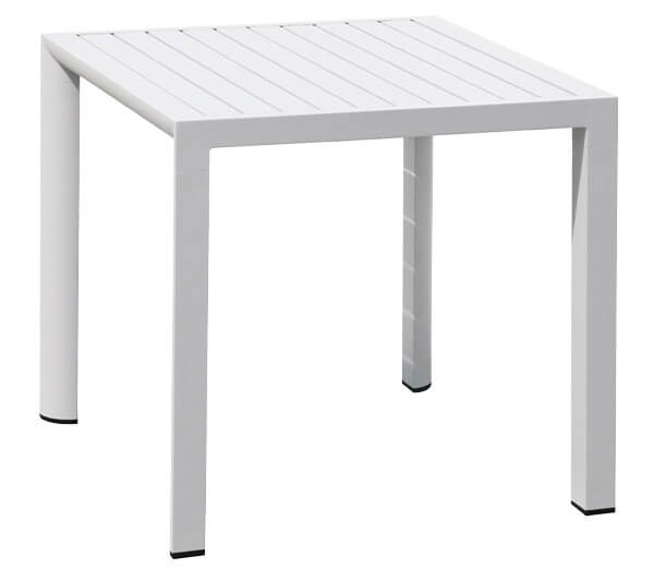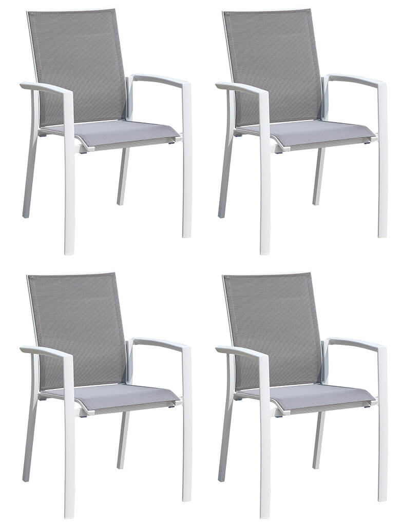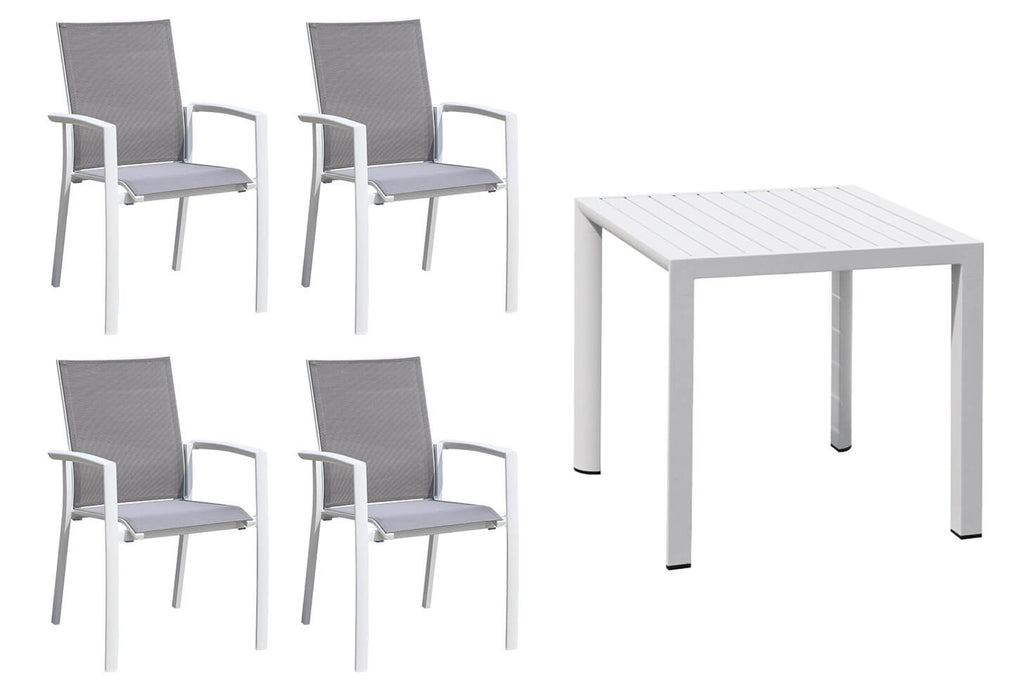 Set aus Tisch und 4 Gartenstühlen aus Aluminium und weißem Textilene