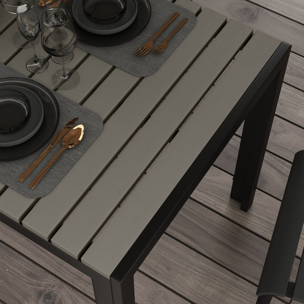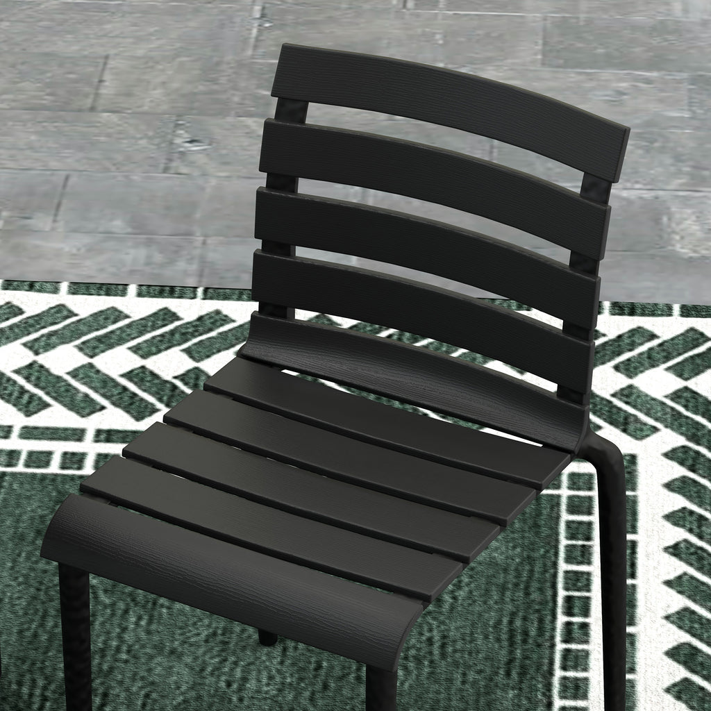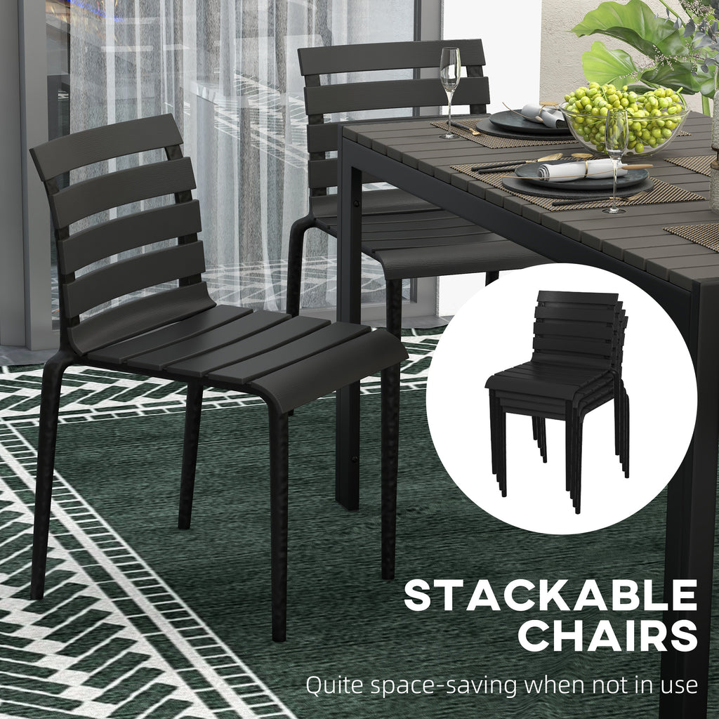 Set Tavolo e 4 Sedie Impilabili da Giardino in Acciaio e Doghe in Plastica Nero