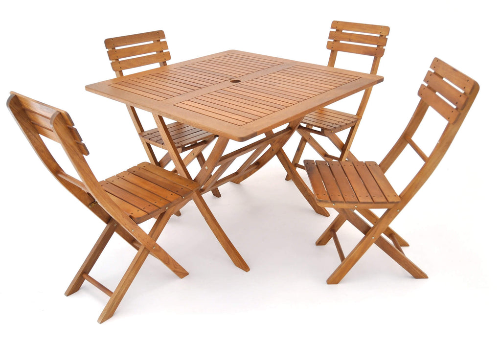 Set aus Tisch und 4 klappbaren Gartenstühlen aus Holz