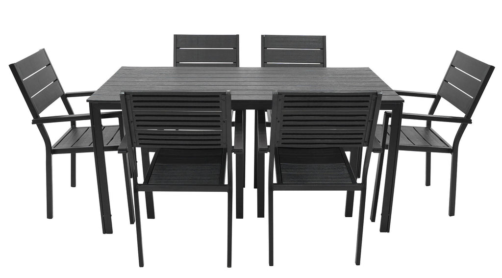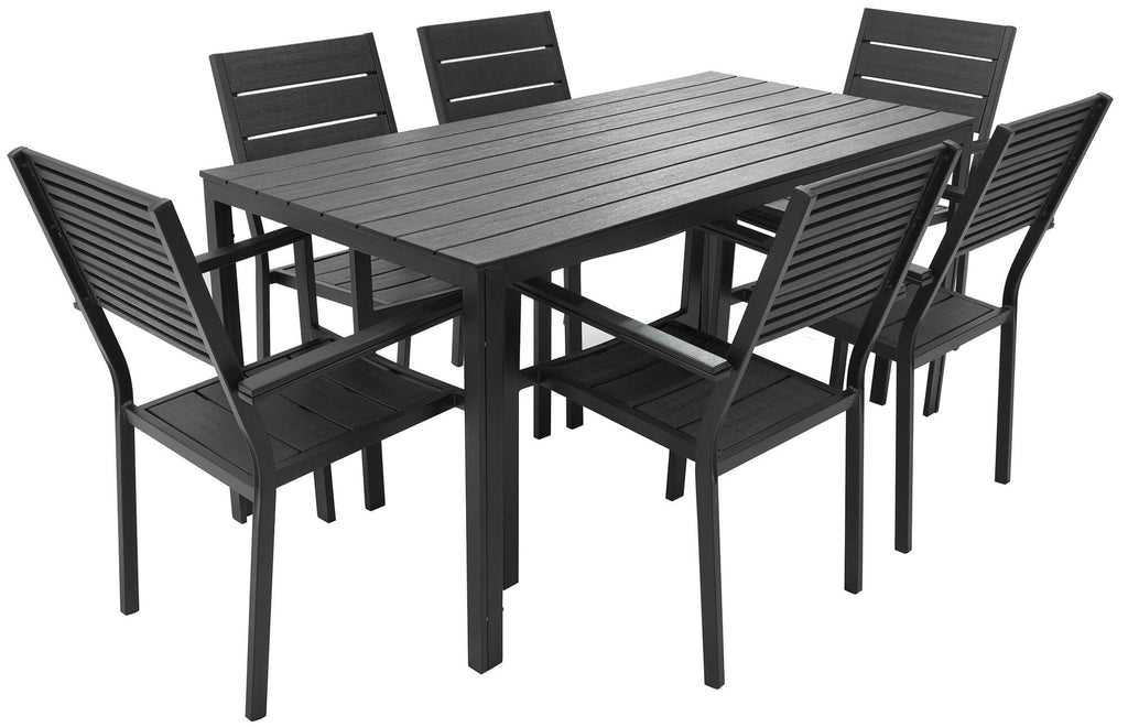 Set aus Tisch und 6 Gartenstühlen aus schwarzem Altair-Stahl