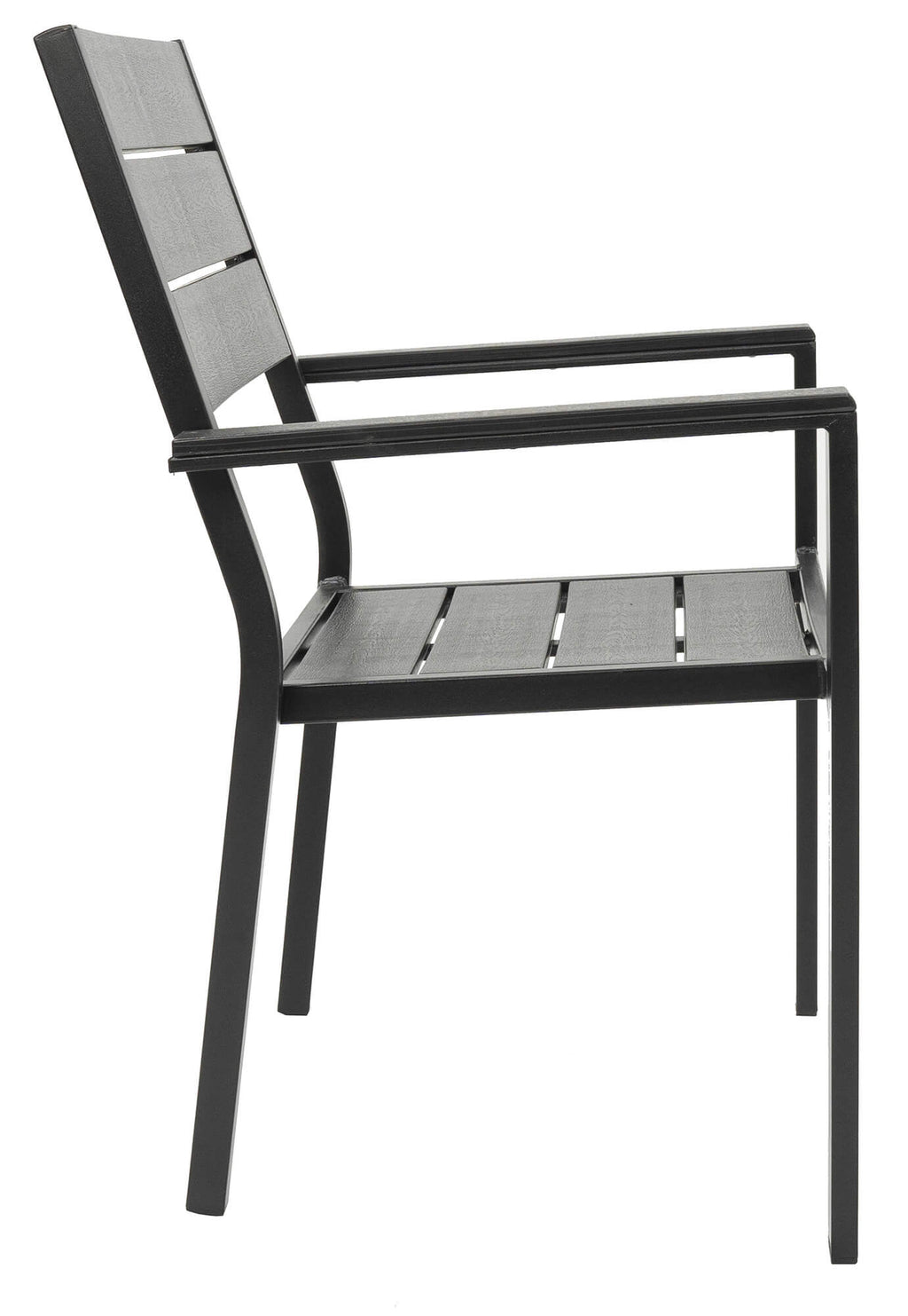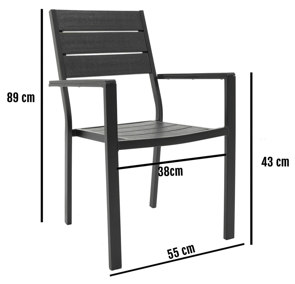 Dieses komplette Metallset hat ein perfektes Design, das Ihrer Terrasse, Ihrem Garten oder Ihrem Esszimmer einen Hauch von Stil verleiht. Das Tisch- und Stuhlset besteht aus stabilem pulverbeschichtetem Metall und 13 mm HDPE-Latten in Teak-Optik. Die Esszimmerstühle sind bei Nichtgebrauch platzsparend stapelbar und leicht zu reinigen. Das komplette Altair-Set beinhaltet einen Tisch und 6 Stühle.