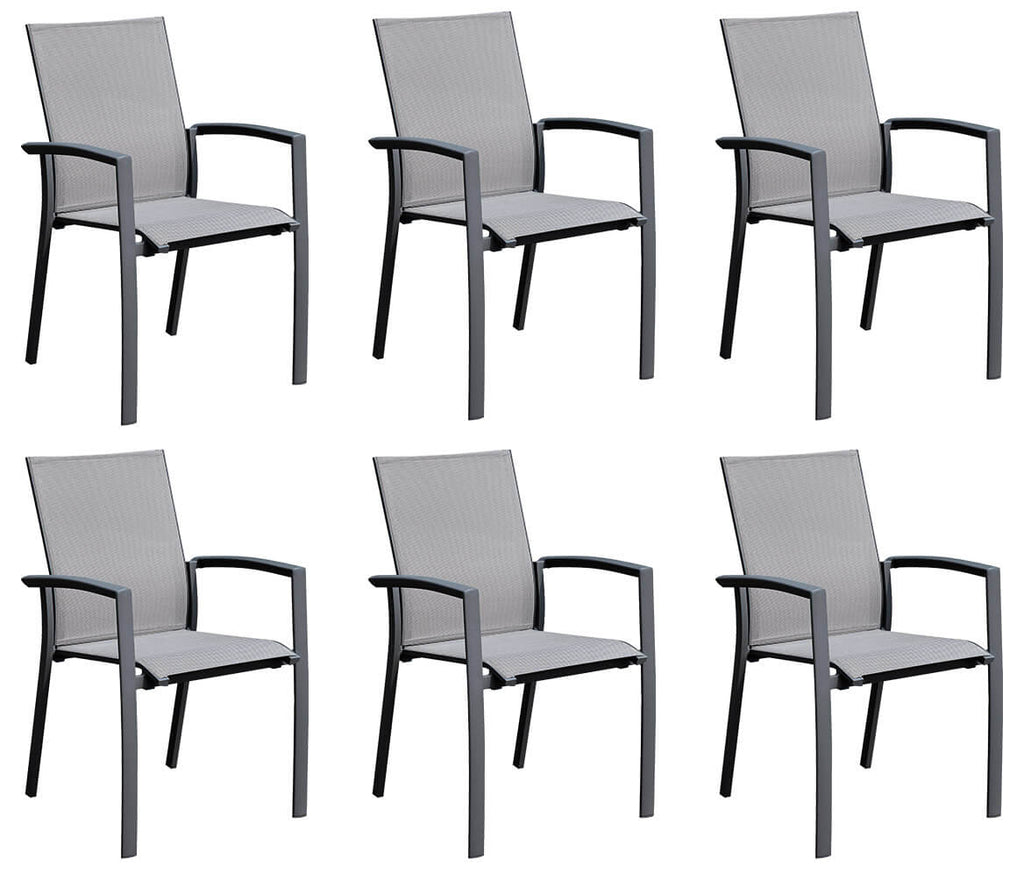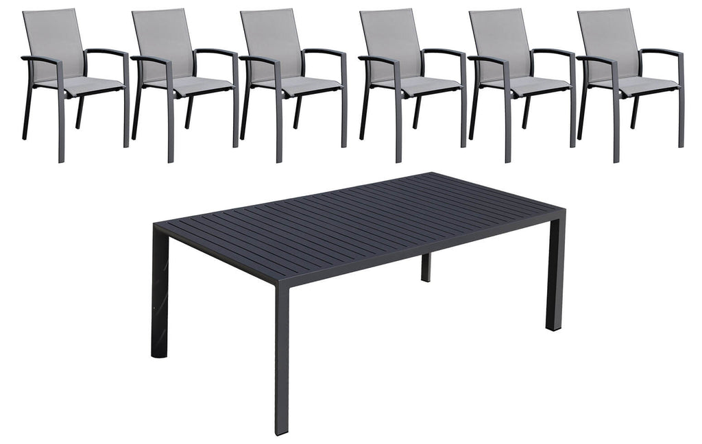 Set aus Tisch und 6 Gartenstühlen aus Aluminium und anthrazitfarbenem Textilene