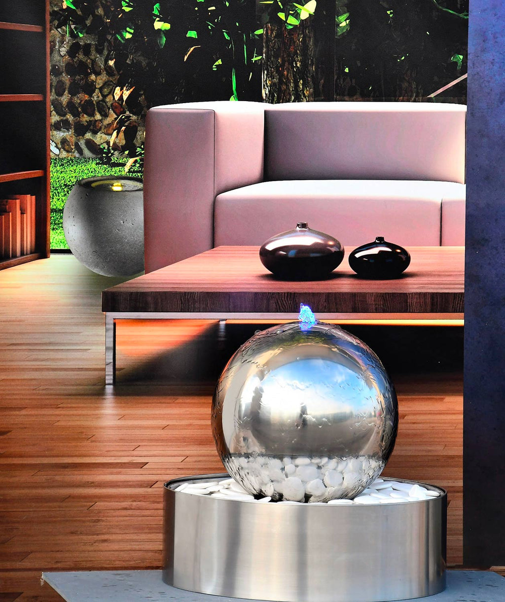 La Sfera in Acciaio è l'elemento perfetto per aggiungere stile e luminosità a qualsiasi ambiente. Con il suo design elegante, la pompa di ricircolo integrata e l'illuminazione a LED, si adatta perfettamente a una vasta gamma di contesti, sia interni che esterni. Offre un'esperienza rilassante con suoni dolci e un'atmosfera unica e raffinata.