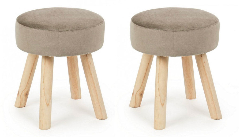 Set 2 Sgabelli 34x34x38 cm in Velluto Adeline Tortora