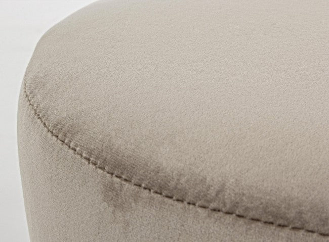 Lo sgabello presenta una struttura in legno di pino e MDF con verniciatura a base di nitrocellulosa per una finitura resistente e durevole. Il rivestimento è realizzato in poliestere con effetto velluto, aggiungendo comfort e un tocco di eleganza. Questo sgabello è pensato per essere un elemento decorativo e funzionale in vari ambienti della casa, offrendo una seduta comoda e uno stile raffinato.