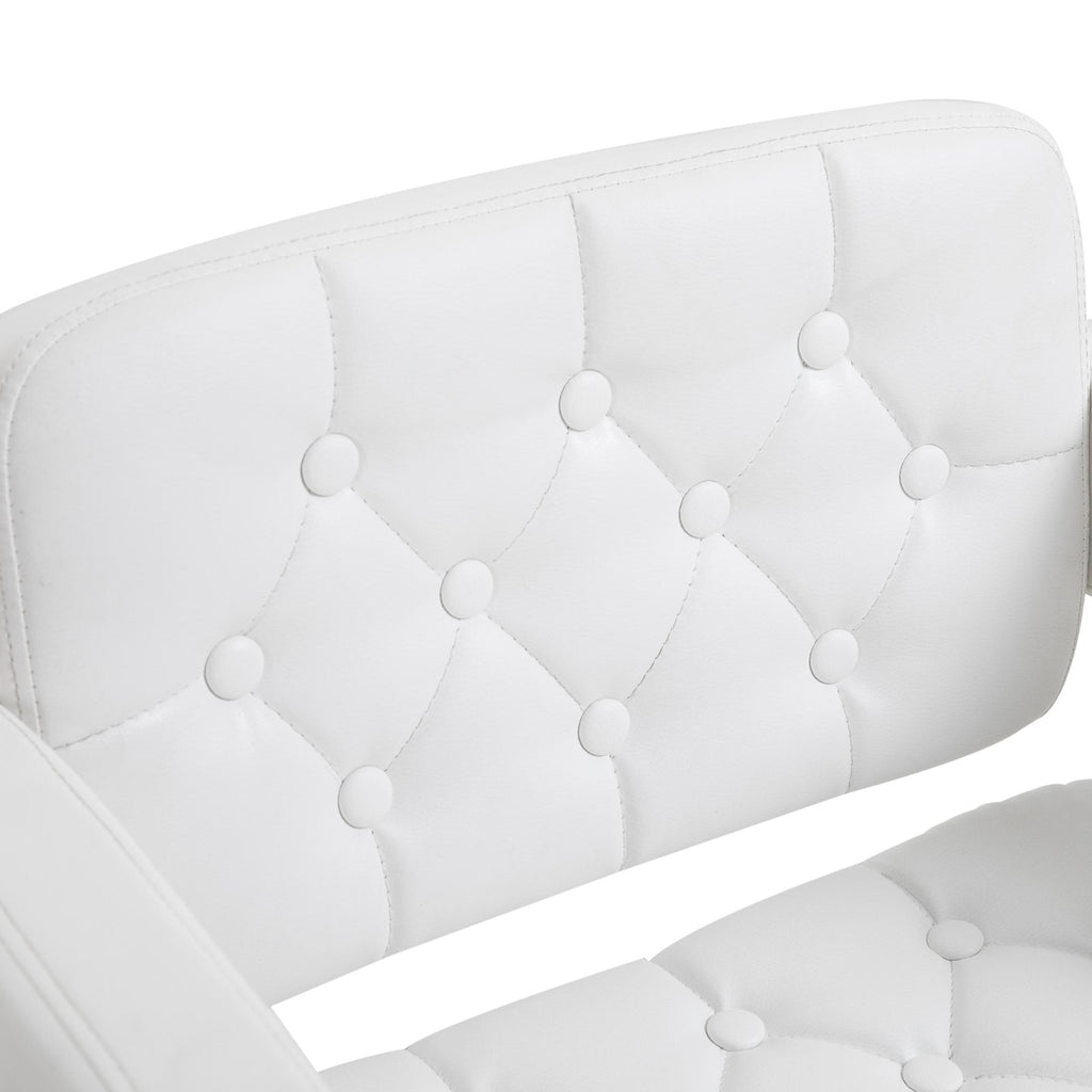 - KUNSTLEDERBEZUG: Sitzfläche, Armlehnen und Rückenlehne sind gepolstert und mit weichem weißem Kunstleder bezogen. Ein widerstandsfähiges und leicht zu reinigendes Material: perfekt in der Küche!