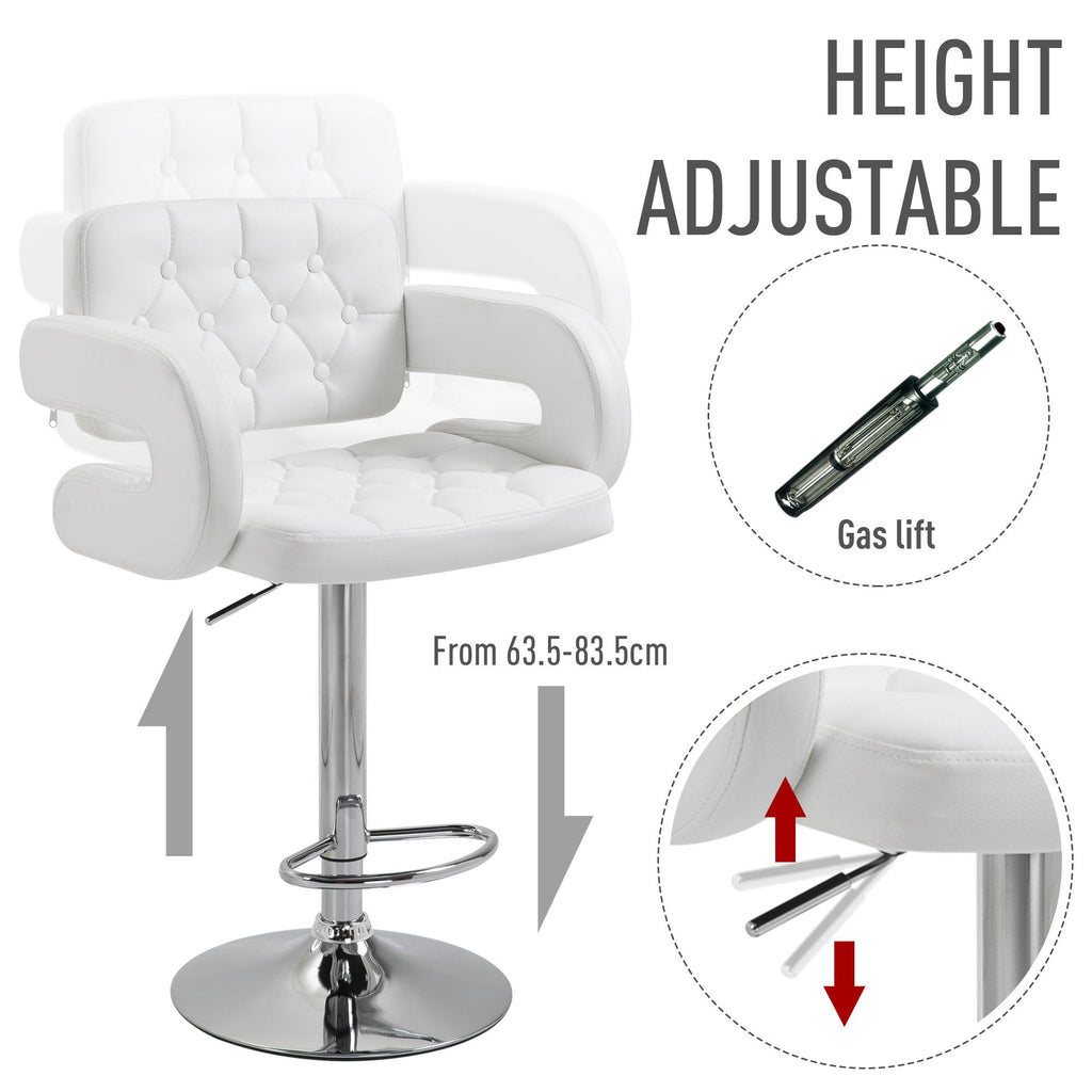 Hoher Barhocker mit Armlehnen Gaslift Drehsitz weiß